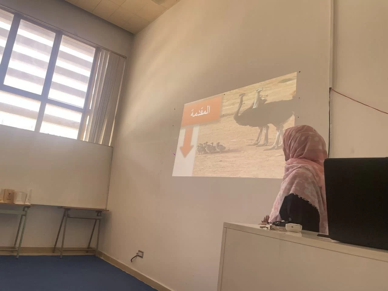 الطالبة هاجر العربي في دراسة مكتبية بعنوان (إدارة وتربية طائر النعام) تحت إشراف د. زياد بن محمود.
