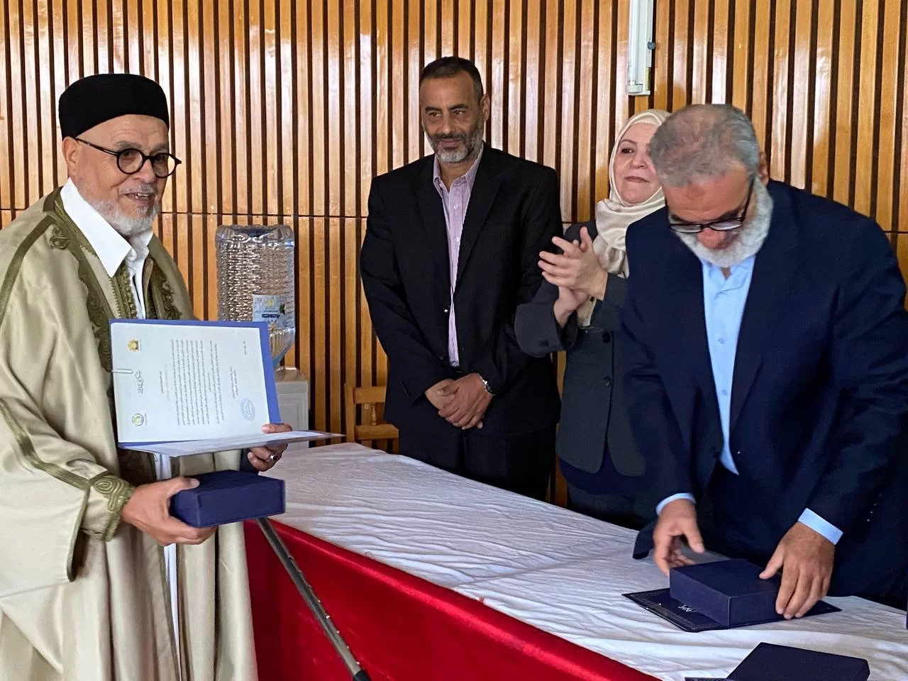 وألقيت كلمات من الحضور الكريم عمن كانوا معنا وقد رحلوا ولكن ظلت ذكراهم خالدة في ذاكرة الجميع وهم د. عبد المنعم الطاهر، د. عبد السلام أبو عائشة، د. عياد مجيد، د. علي معيزة، د. رمضان المبروك، أ. صبري قربع.