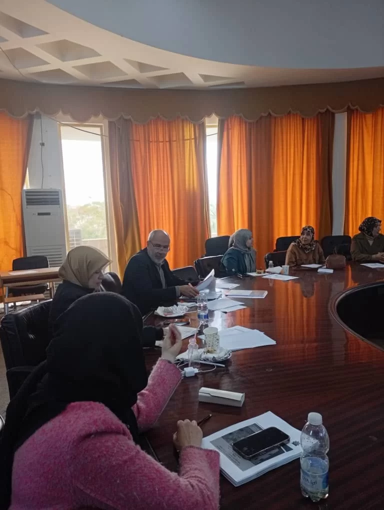 تم اجتماع القسم بحضور اعضاء هيئة التدريس ورئيس قسم الاستاد عبد الرزاق حكم وتمت مناقشة كل بنود الاجتماع من مراسلات والاستعداد للفصل الربيع ومناقشة بنود الدراسة والامتحانات من قيل أ . هدية دريس وكذلك ما ستجد من استعدادات لاستقبال فريق الجودة من قبل منسق الجودة أز حميدة العماري وما يستجد من إجراءات للطلاب الدراسات العليا من قبل منسق الدراسات العليا د. ناجية الغرياني وبكل موضوعية واتخاذ ما يلزم من قرارات شانها بما يضمن الارتقاء بمستوي العملية التعليمة داخل القسم