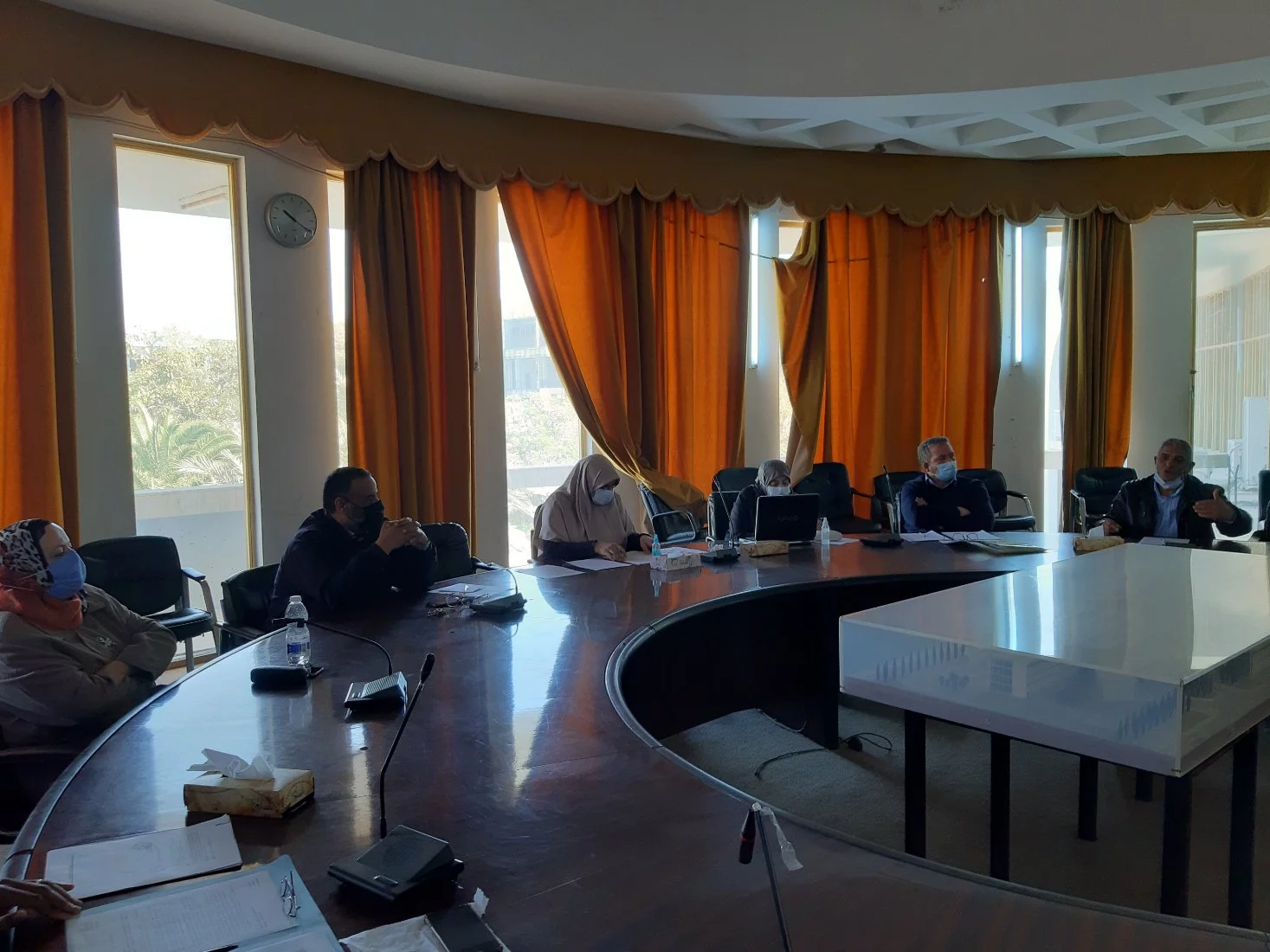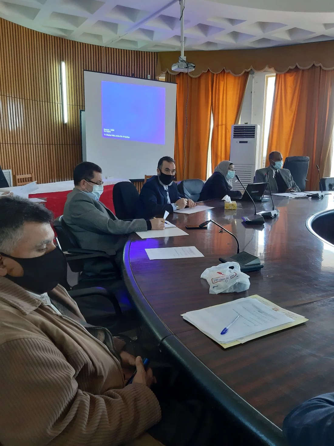 عقد صباح اليوم الاربعاء الموافق: 10/02/2021 اجتماع مجلس الكلية الثاني لسنة 2021 بقاعة اجتماعات مجلس الكلية.