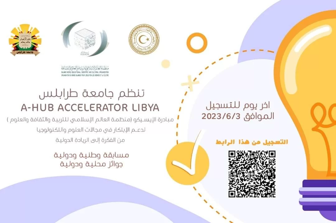 تنفذ جامعة طرابلس المسابقة الوطنية A-HUB الخاصة بمسرع ريادة الاعمال وذلك بالتعاون مع منظمة العالم الاسلامي للتربية والعلوم والثقافة (الإيسيسكو). ستشارك المشاريع المحلية المتميزة والفائزة فى مسابقة اقليمية للمنافسة مع المشاريع المتميزة من دول مختلفة من اعضاء منظمة الايسيسكو. هذه دعوة لكافة اصحاب ا