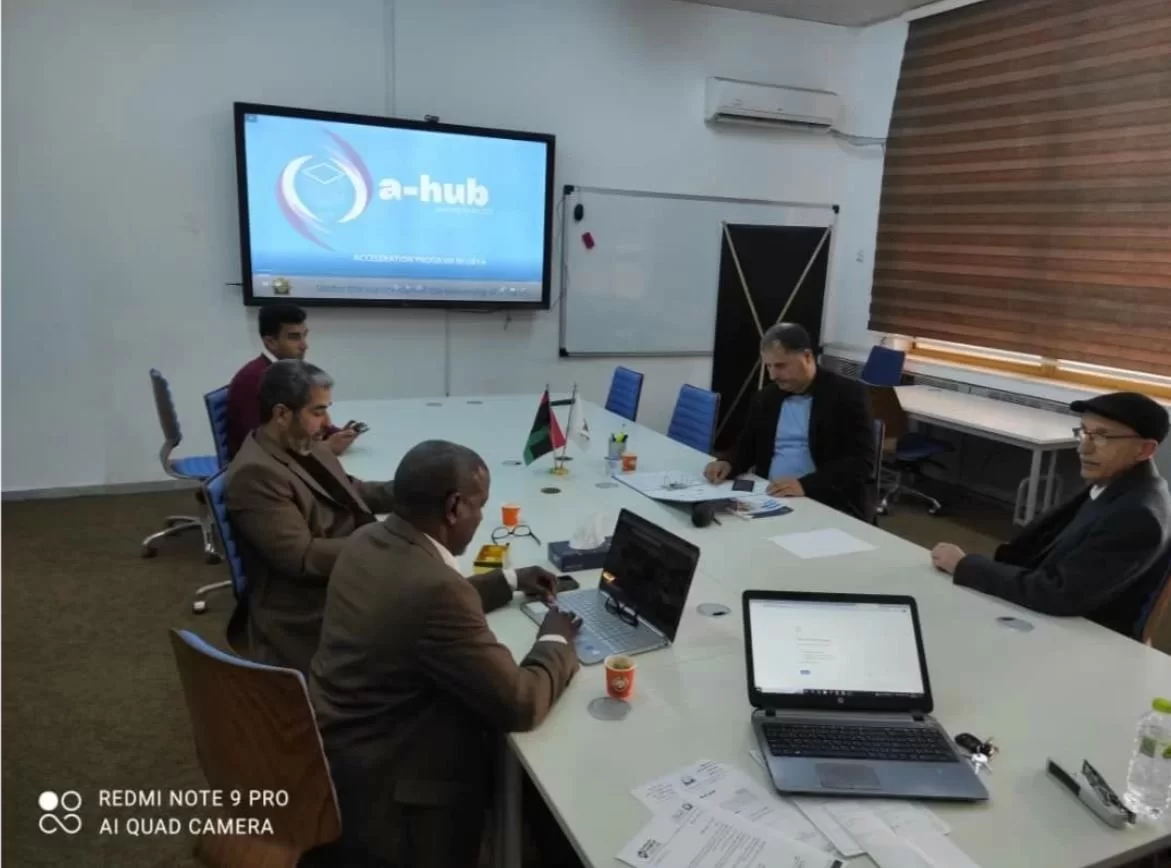 الاجتماع التنسيقى الاول لمشروع مسابقة مسرعة الاعمال A .HUB التنسيقي بمكتب التعاون الدولي - جامعة طرابلس