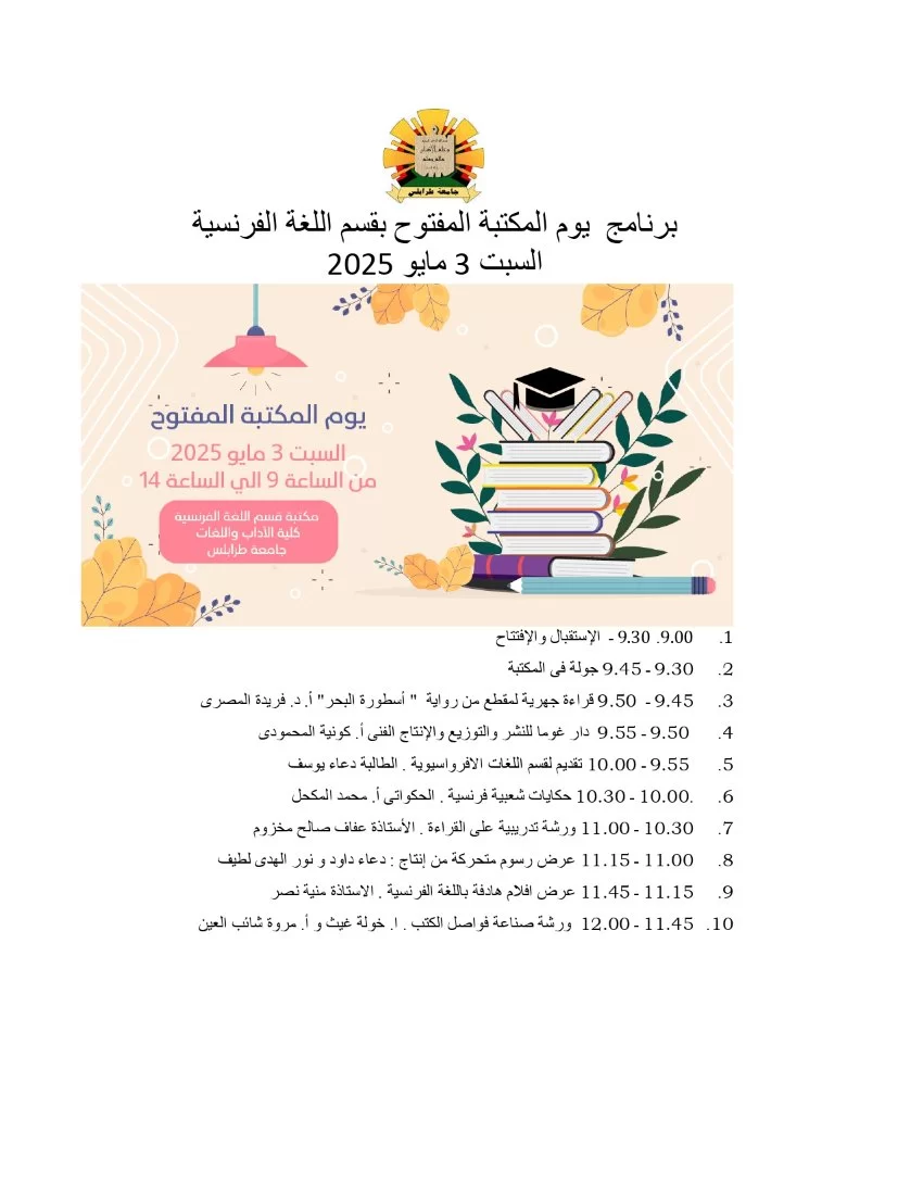 الفرنسية بكلية الآداب واللغات في جامعة طرابلس دعوة الطلاب وأعضاء هيئة التدريس والمهتمين