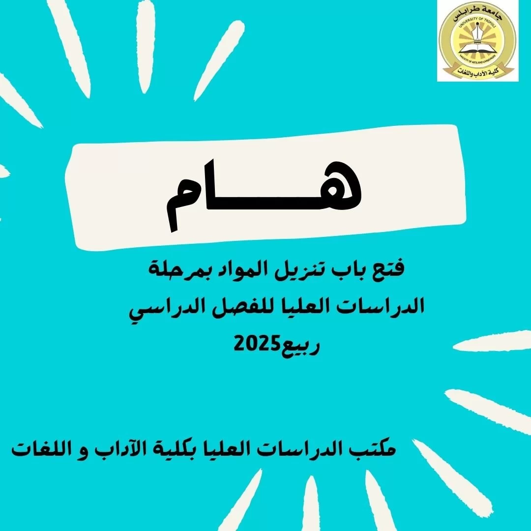 إعلان هام للطلاب الجدد المقبولين في الدراسات العليا بكلية الآداب واللغات للفصل الدراسي ربيع 2025
