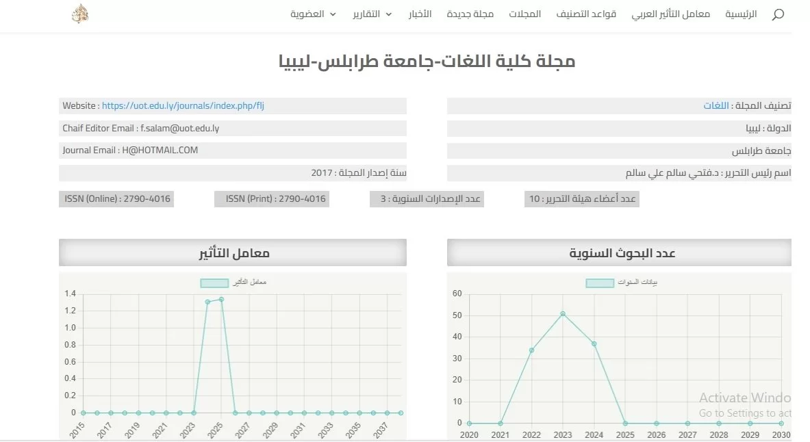 مجلة كلية اللغات تحقق تقدماً في معامل التأثير العربيArab Impact Factor