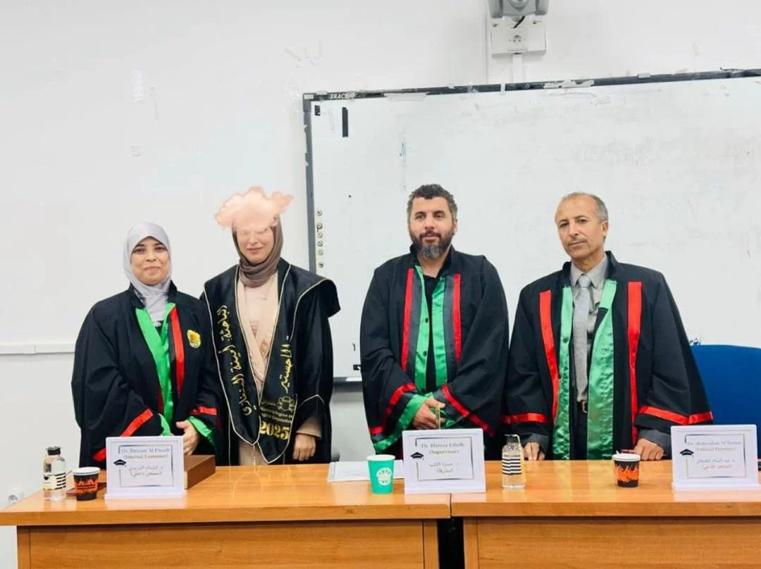 نوقشت اليوم، الاثنين الموافق 2 يونيو 2025، في قاعة المناقشات بالكلية، رسالة الماجستير المقدمة من الباحثة آية مصطفى بن الحاج، بقسم اللغة الإنجليزية. حملت الرسالة عنوان: "A Study of the Challenges Associated with Critical Thinking in the
