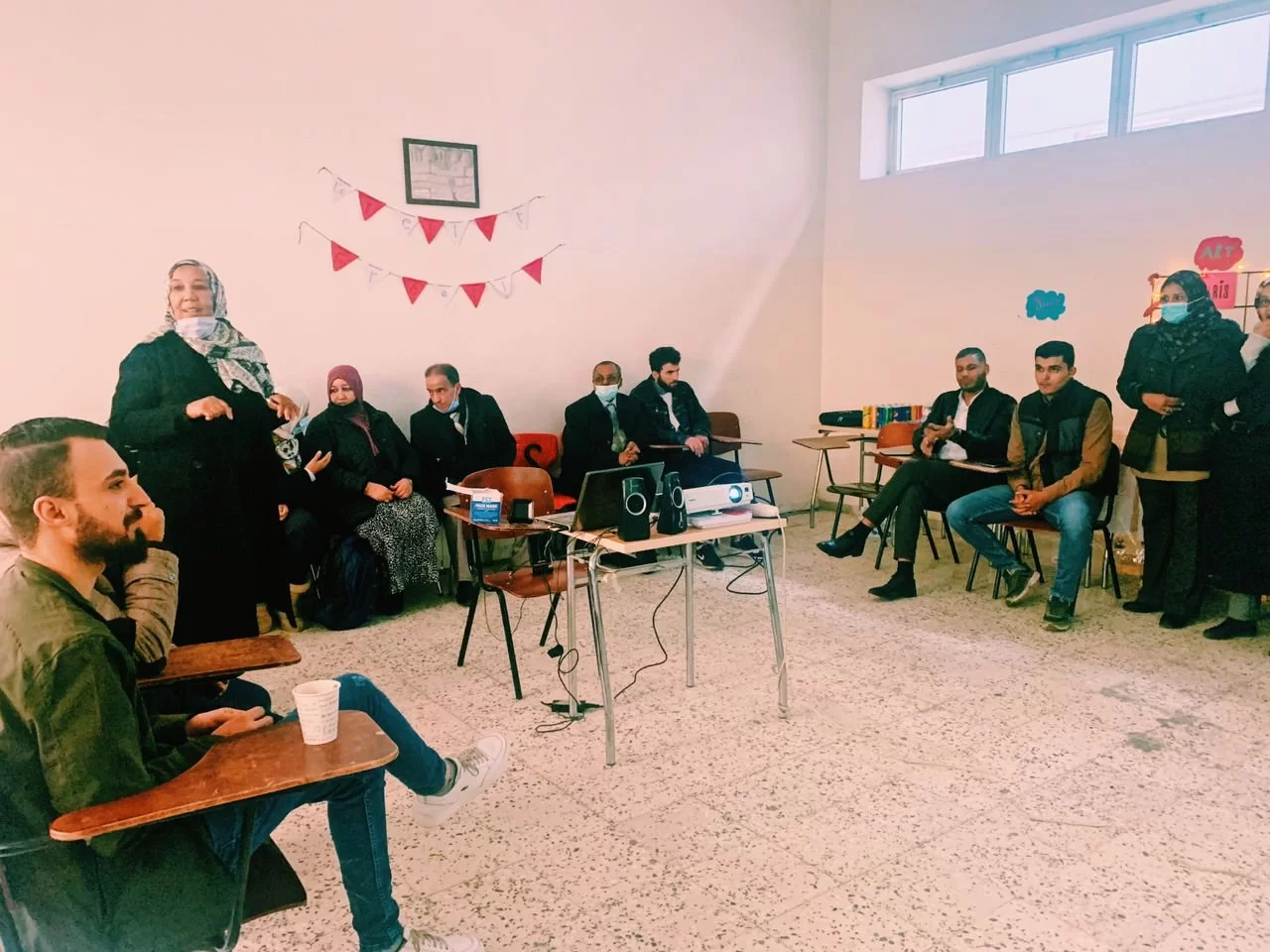 اما ثاني المتحدثين كان السيدة وكيل كلية اللغات التي ابدت اعجابها بالمشروع وختمت حديثها بكلمات الثناء والتشجيع لكل المنظمين. وأيضاً كلمة الأستاذة نعيمة الصويعي مدير مكتب التدريب والبحوث والاستشارات بالكلية.