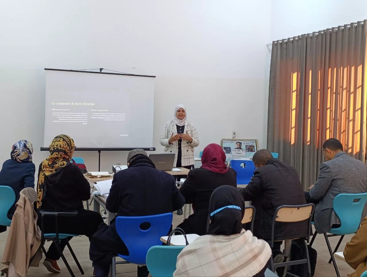 "في إطار برامج الأنشطة البحثية لقسم اللغة الفرنسية، عقدت اليوم الاحد الموافق 02/23/ 2025 حلقة نقاش (سمينار) حول الأفكار البحثية المقدمة من الطلاب :