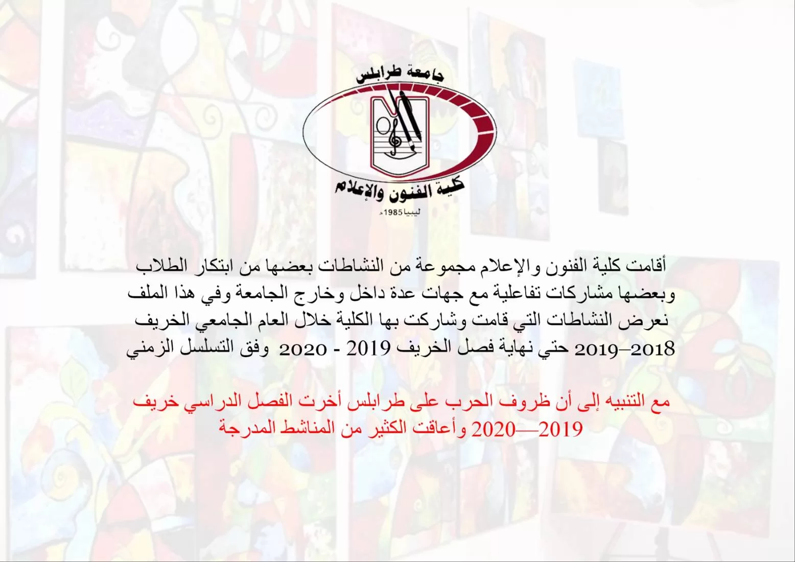نشاطات كلية الفنون والإعلام