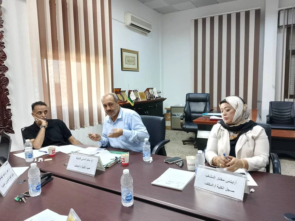 جتماع السيد/د. وكيل الكلية للشؤون العلمية بالسادة رؤساء الأقسام العلمية صباح اليوم: الأحد الموافق 20 أكتوبر 2024م، علي تمام الساعة 10 صباحاً، ناقش الحاضرون عدة بنود ومن أهمها استعراض الخطة الدراسية.