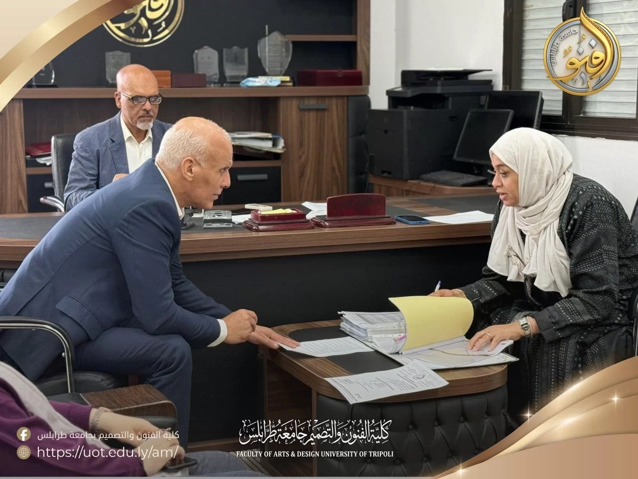 قام فريق من رؤساء أقسام الجودة بالجامعة برفقة السيد مدير إدارة الجودة وتقييم الأداء الدكتور بشير الزرزاح صباح اليوم الأربعاء الموافق 22 أبريل 2026م بجولة تفقدية داخل الأقسام العلمية بالكلية الفنون والتصميم.
