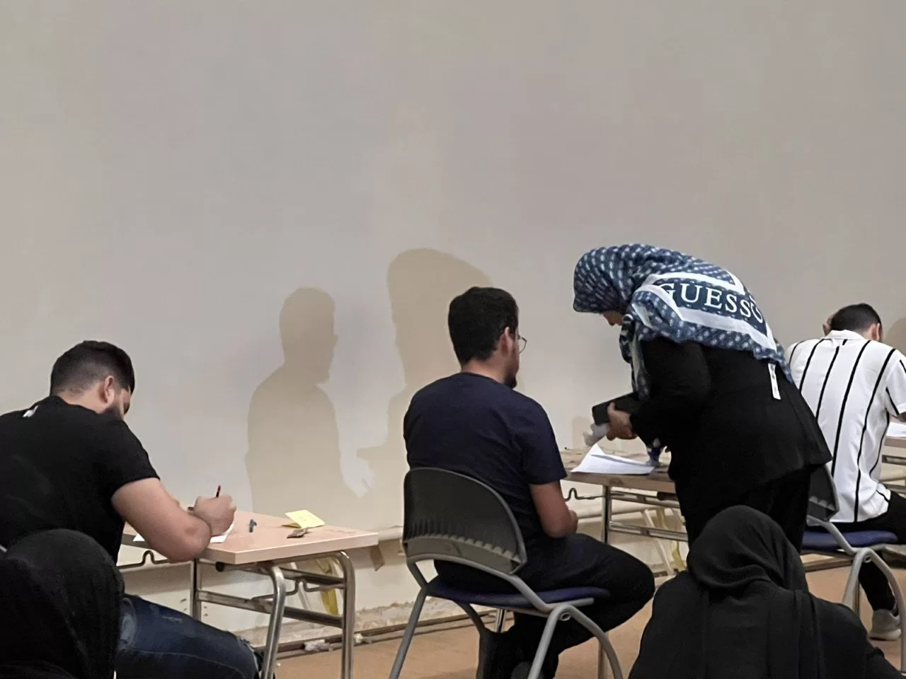 هذا وقد اجريت الامتحانات داخل اروقة وممرات الكلية بالاضافة الى القاعات الدراسية الصغرى والمعامل .