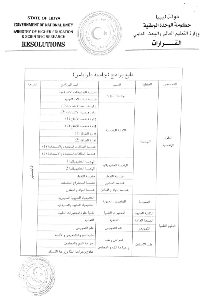 منحت وزارة التعليم العالى الليبة الاذن لكلية طب وجراحة الفم والاسنان بالبدء فى تنفيذ برامج الدراسات العليا فى تخصصات جراحة الفم وطب الفم والتشخيص وعلاج اللثة وجراحة الاسنان وفق ماورد فى قرار وزير التعليم العالى والبحث العلمى 1611 لسنة 2022.