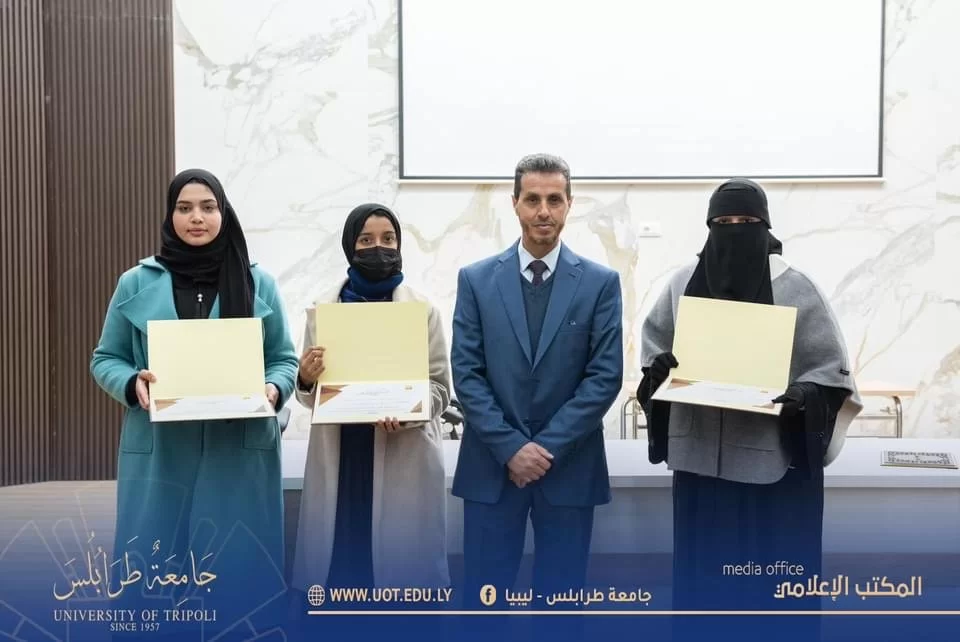 أُقيمت صباح اليوم الأحد الموافق 8 يناير 2023 م احتفالية تكريم الطلبة المتفوقين بكليات القاطع " ج " للفصل الدراسي " ربيع 2022 م " وعرض مشروع إعادة تأهيل مخطط عام المركب " ج " تاجوراء وذلك على تمام الساعة 11:00 صباحاً بمدرج رشيد كعبار بحضور السيد رئيس جامعة طرابلس رفقة السيد وكيل وزارة الزراعة والسيد وكيل الجامعة للشؤون العلمية والسيد وكيل الجامعة للقاطع " ج " والسيد وكيل الجامعة للشؤون الطلابية والسيد وكيل العلوم الطبية والسيد المسجل العام والسيد عميد كلية الاقتصاد والعلوم السياسية والسيد عميد كلية تقنية المعلومات والسيد وكيل كلية تقنية المعلومات والسيد منسق كلية القانون تاجوراء والسادة أعضاء المجلس البلدي تاجوراء ولفيف من أعضاء هيئة التدريس والطلبة وذويهم، حيث تم تكريمهم وتسليم شهائد تفوقهم من رئاسة الجامعة إضافةً لبعض الجوائز التحفيزية وذلك من منطلق دعم جامعة طرابلس الدائم لأبنائها المتميزين والدفع بهم للمضي قدماً نحو الأمام والتفوق .وفيما بعد قام مشرفي مشروع إعادة تأهيل مخطط مركب " ج " العام بتقديم عرض فني للمشروع لرئاسة جامعة طرابلس والحضور وقد نال استحسان وإعجاب الجميع .سائلين الله عز وجل دوام الإبداع والتوفيق للجميع .#المكتب_الإعلامي_بجامعة_طرابلس