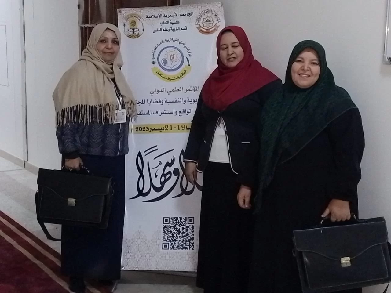 تمت مشاركة كل من الزميلات الفضليات : خيرية محمد بن عصمان، سعاد عبدالله العاكوري، هدى عويطي بورقات علمية قيمة في المؤتمر العلمي الدولي الموسوم بـ "العلوم التربوية والنفسية وقضايا المجتمع" والذي نظمته الجامعة الأسمرية الإسلامية / كلية الآداب/ قسم التربية وعلم النفس ، في الفترة 19- 20- 21 ديسمبر 2023.وتضمن مؤتمر (5) جلسات علمية في اليوم الأول، و(9) جلسات خارجية في اليوم الثاني، وتم عرض (71) بحثًا منهم (35) مشاركة من ليبيا و(35) مشاركة من خارج ليبيا ، وقد خرج المؤتمر بعدة توصيات نرجو العمل على تحقيقها .