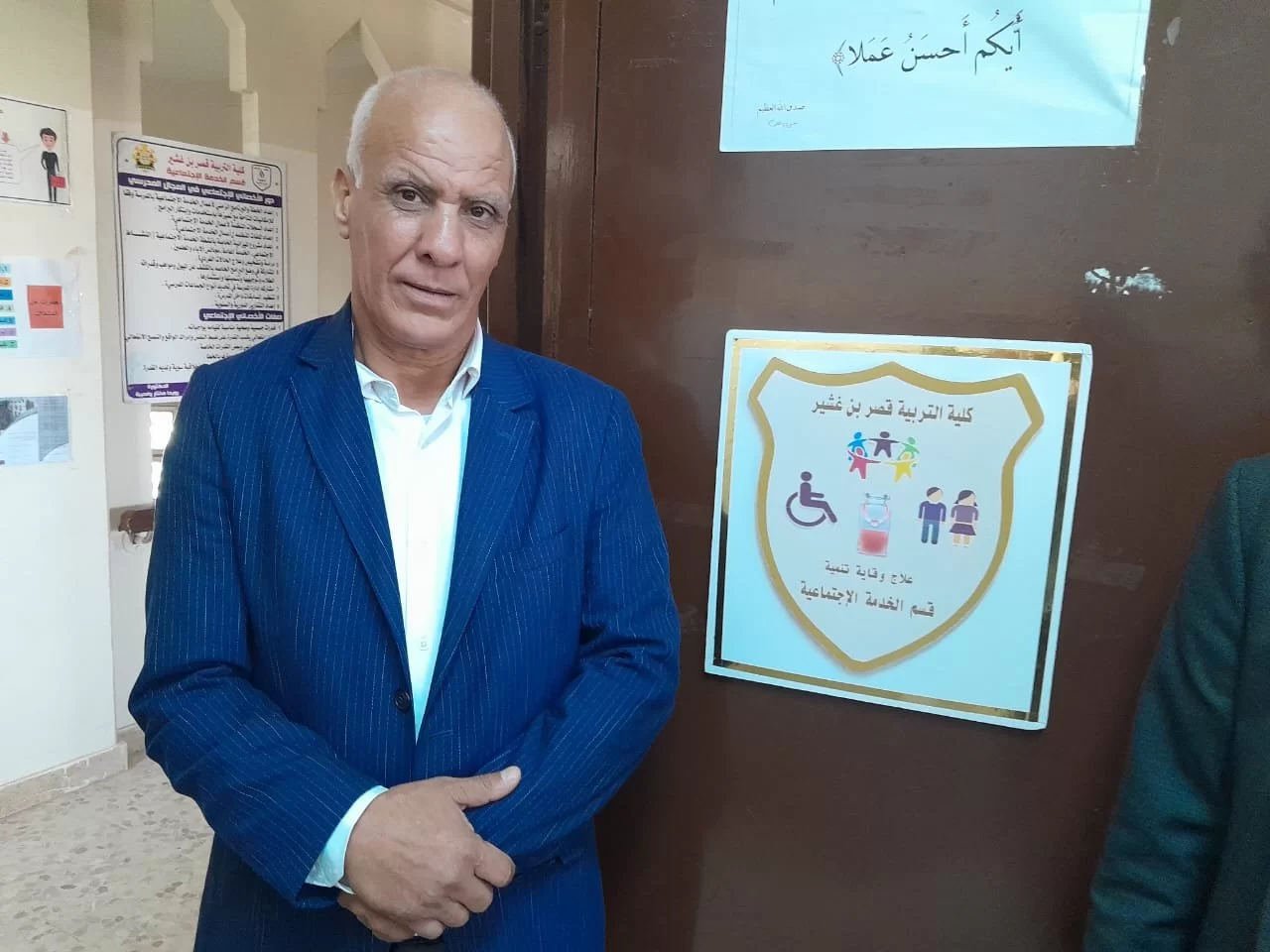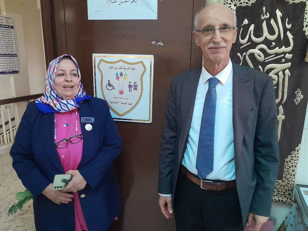 خلال زيارة زيارة الفريق المركز الوطني لتأسيس والجودة في المؤسسات التعليمية كان في استقبالهم رئيس الجامعة دكتور خالد عون ودكتور بشير الزرزاح وقام خلال هذه الزيارة بجولة على الأقسام العلمية بالكلية وكان من بينهم قسم الخدمة الاجتماعية وكان في استقبال رئيس الجامعة رئيس القسم ومنسق الدراسة والامتحانات ومنسق الجودة بالقسم ومجموعة من أعضاء هيئة التدريس بالقسم كما أنه تم الأبناء على المجهودات المبذولة في القسم والتي تهدف إلى الرفع من مستوي العملية التعليمية بالقسم