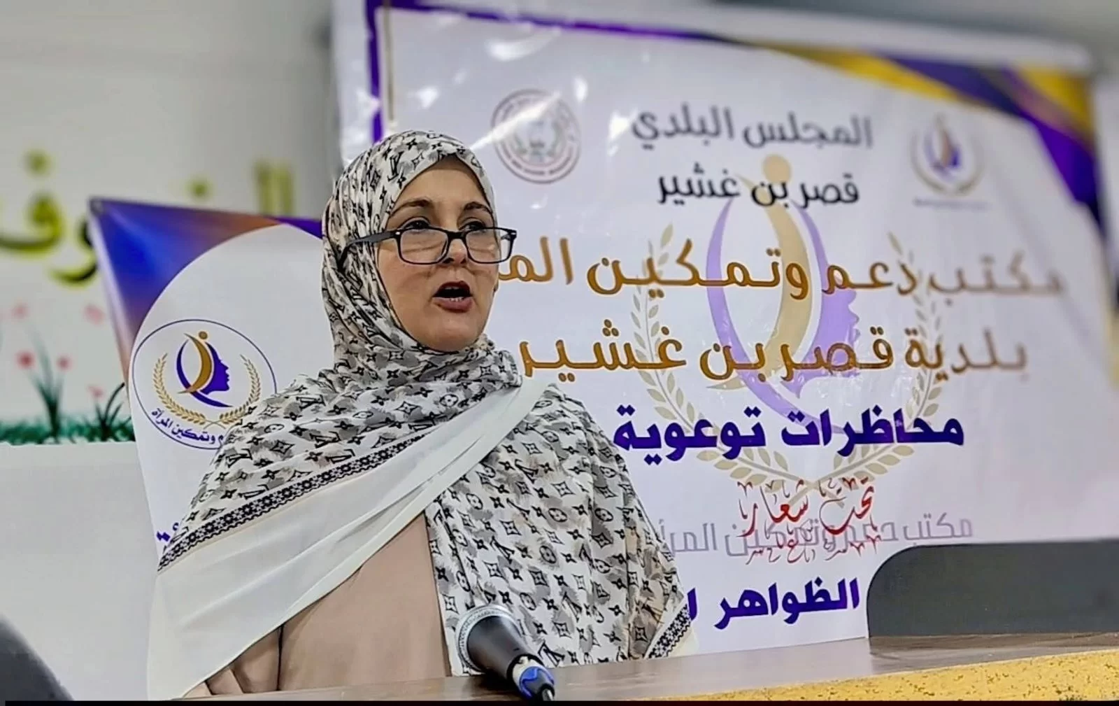 مكتب دعم وتمكين المرأة ببلدية قصر بن غشير، مشاركة مع قسم الخدمة الاجتماعية بكلية التربية قصر بن غشير،