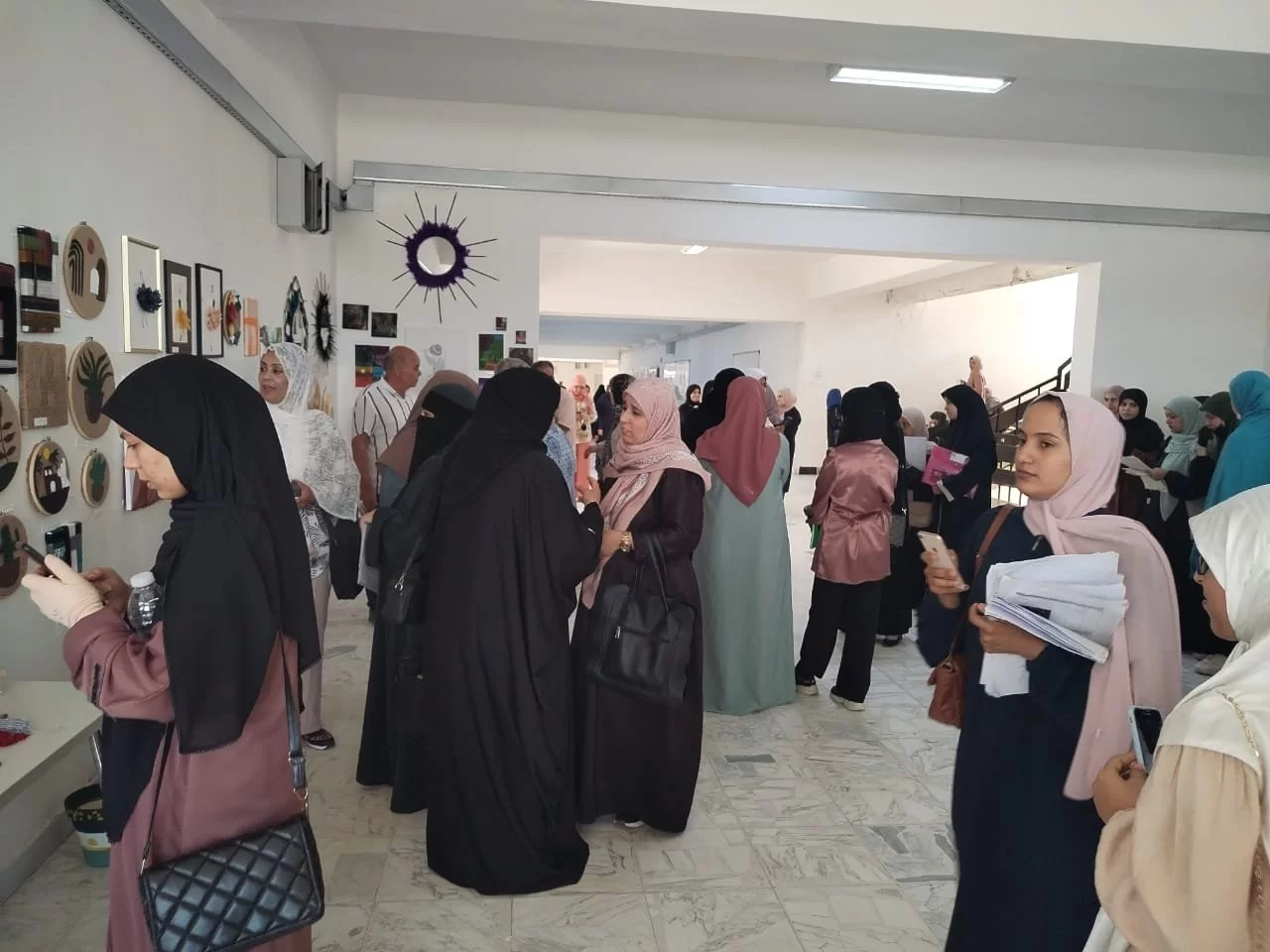 مع قرب انتهاء الفصل الدراسي اقيمت في يوم الامس معرض خاص بطالبات التربية الفنيو في قسم معلم فصل حيث افتتح المعرض عميدالكلية الدكتور عبداللطيف عبد السلام شعبان ووكيل الكلية الاستذ الهلول القمي ورئيس قسم معلم فصل الاستاذة هناء بن غرسة و رئيس قسم الجود ة و وجومةعة من اعضاء هئية التدريس بالقسم و الاقسام الاخرى