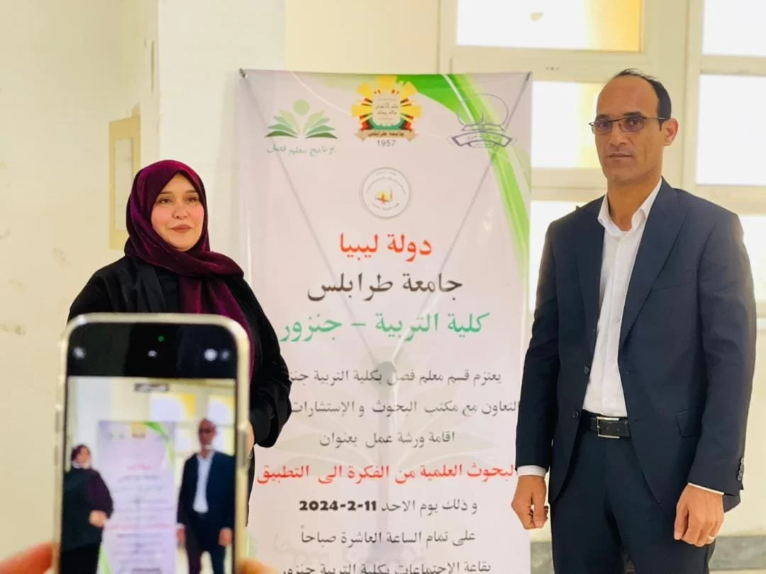 أقيمت صباح امس الاحد ورشة عمل بعنوان البحوث العلمية من الفكرة الى التطبيق ، قدمتها الدكتورة هدى الرواب و الاستاذ سالم غليليب ، بأشراف وتنظيم قسم معلم فصل و قسم البحوث والاستشارات بكلية الترببة جنزور ، وذلك ضمن الفعاليات والورش التي ينظمها للفصل الحالي حسب الخطة الفصلية.شهدت الورشة حضور و مشاركة قامات علمية من مختلف الجامعات الليبية و تله من أعضاء هيئة التدريس بالقسم و بالكلية و لفيف من طالبات القسم ، استعرض فيها المشاركين بالتفصيل عدة محاور مختلفة للبحث العلمي مثل- الاتجاهات الحديثة في تصميم البحوث التربوية- معايير كتابة الخطة البحثية-شروط اختيار و صياغة مشكلة البحث- معايير تقييم البحوث التربوية- الأخطاء الشائعة في كتابة البحوث التربوية- الضوابط القانونية و الاخلاقية في اعداد البحوث.و في نهاية الورشة تم تكريم المشاركين و الحضور بشهائد تقدير.