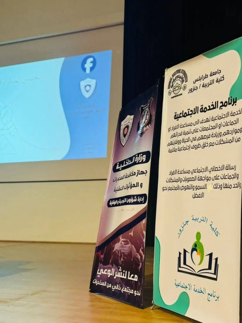 يماناً من بمسؤولية قسم الخدمة الاجتماعية ودوره في نشر الوعي وحماية الطلبة من المخاطر التي تهدّد مستقبلهم. وقد قام قسم الخدمة الاجتماعية بالتنسيق مع جهاز مكافحة المخدرات والمؤثرات العقلية للاستعانة بخبراء مختصين يمتلكون خبرة ميدانية واسعة في هذا المجال، ليقدموا لنا معلومات دقيقة وواقعية حول: