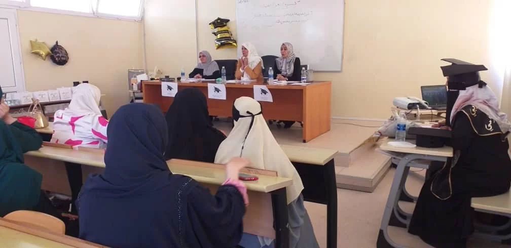 تم صباح اليوم الخميس الماضي مناقشة مشروع التخرج بالقسم في مجال التخصص بتشكيل لجنة لمناقشة المشروع وتقييمه وبحضور اعضاء هيئة التدريس واولياء أمور الطالبات .تمت مناقشة مشروع التخرج المتميز عكس الجهوذ المبذولة للطالبات .
