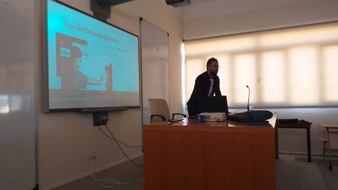 حيث استضاف القسم الاستاذ/محمد سالم الجعفري .( علم النفس الاكلنيكي ) جامعة روما /لاسابينسا.حيث تناولت ورشة العمل استكشاف اضطرابات الشخصية(الانعزالية والفصاميةوالنرجسية والبارانوية) ووصف الخصائص والمعايير الرئيسية، وايضااستكشاف التحديات في تشخيص وعلاج هذه الاضطرابات،ومناقشة دراسات الحالة لتوضيح العرض السريري وتجارب المرضى.