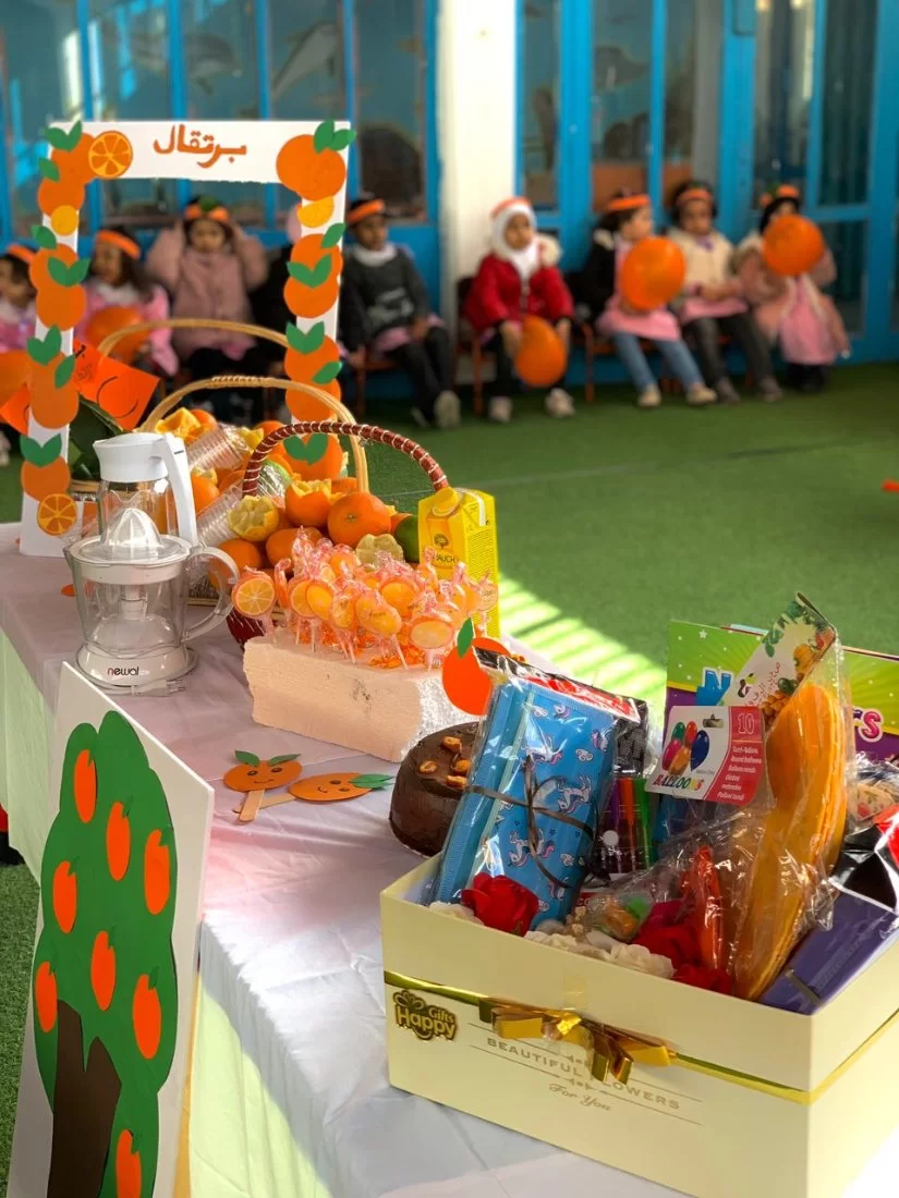 To celebrate the orange season, the field training students in the program held many creative activities under the supervision of Ms. Awatif Al-Shteiwi. They carried out competitive and cooperative games, and the distinguished children were given material reinforcements (gifts).