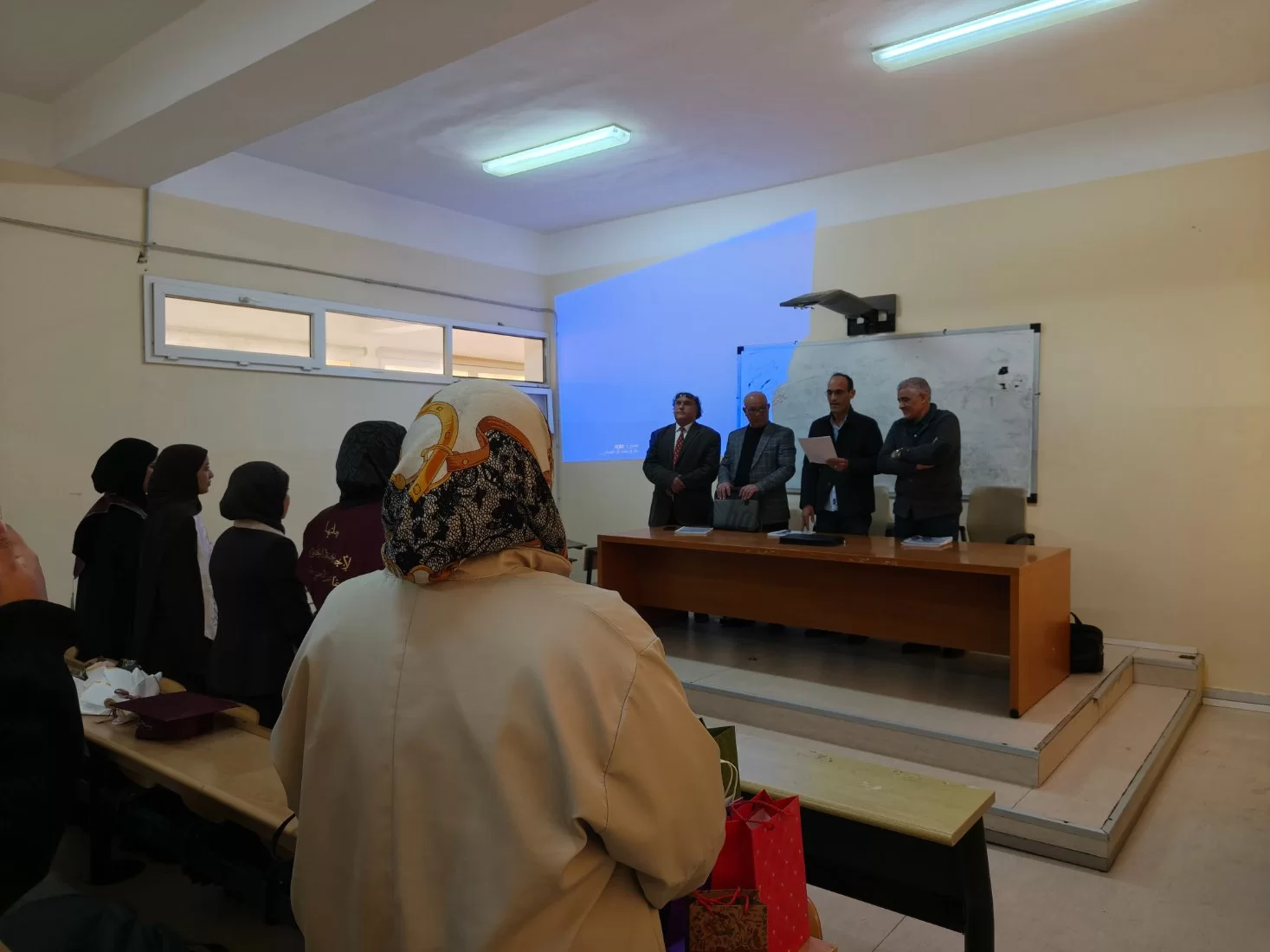 استكمالا لمتطلبات التخرج والتي تستدعي مناقشة مشروع التخرج استمر في كلية التربية بجنزور مناقشة المشاريع لاقسام الكلية المختلفة بجو يسوده الفرح والسرور لكل من المتخرجين ومشرفيهم الذين كانوا في يوم ما اساتذتهم الذين وضعوهم على هذا الطريق فكل التهاني والتبريكات لخريجينا بهذه المناسبة