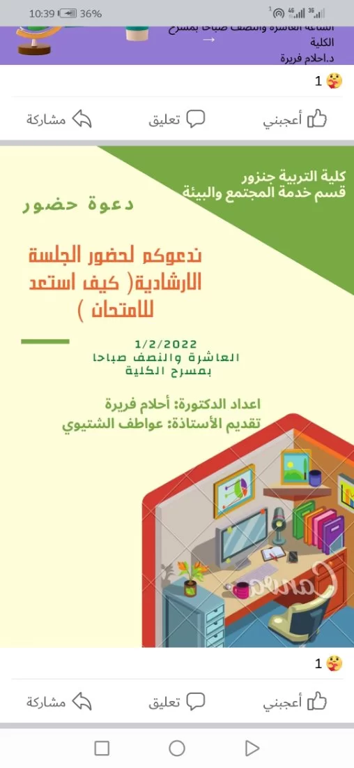ينظم قسم خدمة المجتمع والبيئة بالكلية، بالتعاون مع قسم البحوث والاستشارات والتدريب بالكلية، وقسم رياض الأطفال بالكلية، جلسة ارشاد جماعي ، وذلك يوم الثلاثاء القادم اول ايام شهر فبراير عند تمام الساعة العاشرة والنصف صباحا بمسرح الكلية.