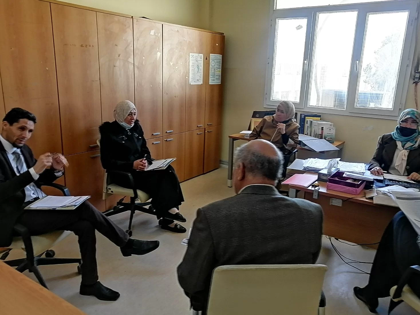 تواصل لليوم الثاني على التوالي زيارة فريق التدقيق المكلف المكلف من المركز الوطني للجودة واعتماد المؤسسات التعليمية والتدريبية حيث تمت الاجتماع برؤساء الأقسام ومناقشة سير العملية التعليمية داخل المؤسسة وكذلك زيارة مكتب البحوث والاستشارات والتدريب بكلية وزيارة لمكتب التوثيق والمعلومات والإطلاع على موقع الكلية بالجامعه ومكتب الخريجين والإطلاع على منظومة الكلية السابقة و البوابة الالكترونية ومخرجاتها واجتمع مجموعة من الأساتذة مع عميد الكلية التشاور في بعض الأمور وأيضا زيارة المرفق الصحي داخل الكلية