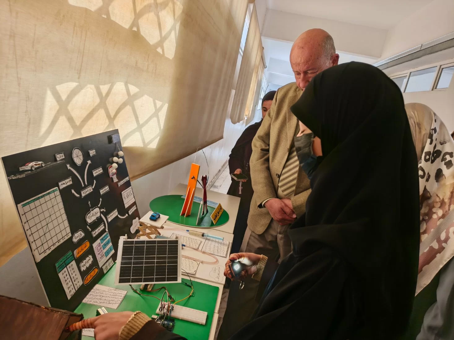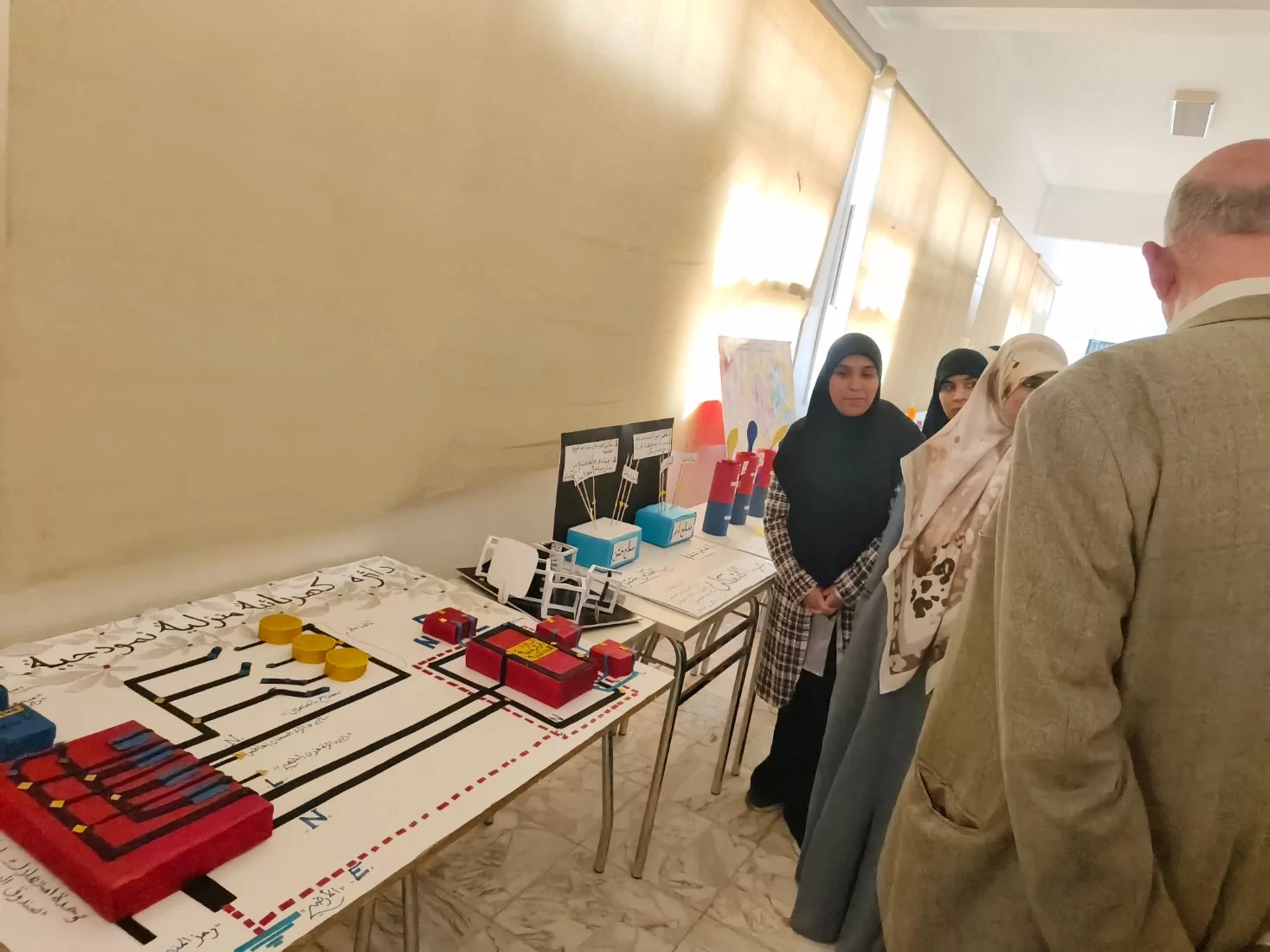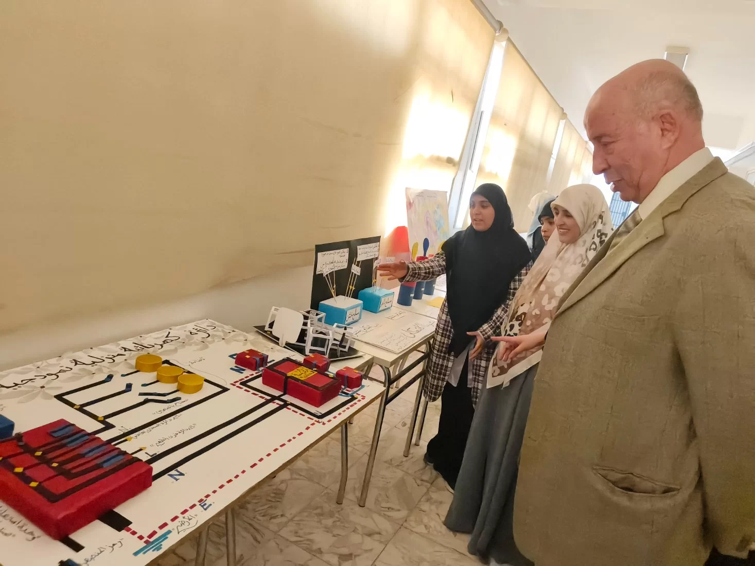 اقيم في صباح يو الامس معرض قسم الفيزياء وذلك لعرض التجارب العلمية التفاعلية و بالتعاون نع قسم البحوث والاستشارات و بحضور عميد الكلية الدكتور عبد اللطيف عبد السلام شعبان ووكيل الشؤون العلمية الدكتورة هناء إبراهيم الصويعيورئيس قسم الفيزياء الاستاذة زهور ونخبة من اساتذة القسم ورئيس قسم الجودة و رئيس قسم البحوث و الاستشارات واعرب الجميع عن سعادتهم بهذا المعرض.