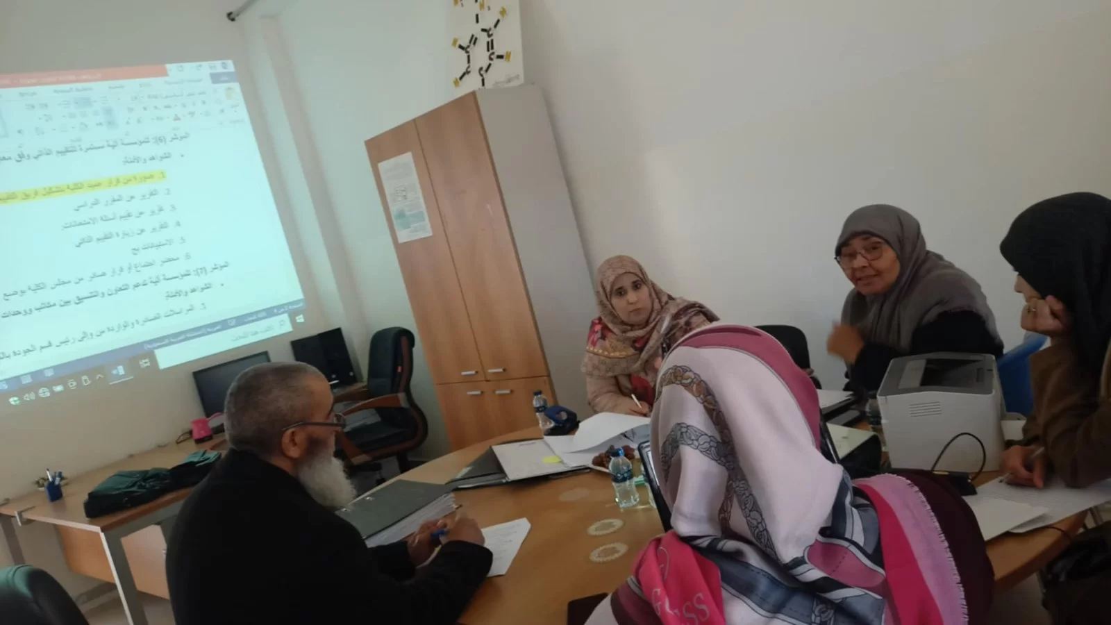في إطار استعداد الكلية للاعتماد المؤسسي البرامجي وبناء على توجيهات رئيس قسم الجودة بالكلية الدكتورة غالية قرقاب أقيمت اليوم ورشة عمل لمعيار الجودة والذي ترأسه رئيس قسم الجودة بالكلية إضاءة إلى مجموعة من الاساتذة الاجلاء وهم