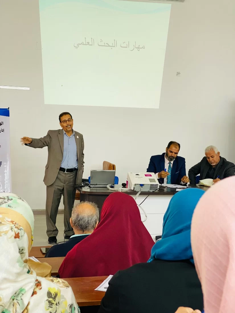 اقيمت صباح اليوم بجامعة طرابلس بمدرج الهوني الورشة التدريبية التي اعدها كل من مكتب الدراسات العليا والجمعية الليبية لعلم النفس والجمعية الليبية للمناهج واسترتجيات التدريس بعنوان تنمية مهارات البحث العلمي لطلاب الدراسات العليا والباحثين في مجال العلوم التربوية والتفسية