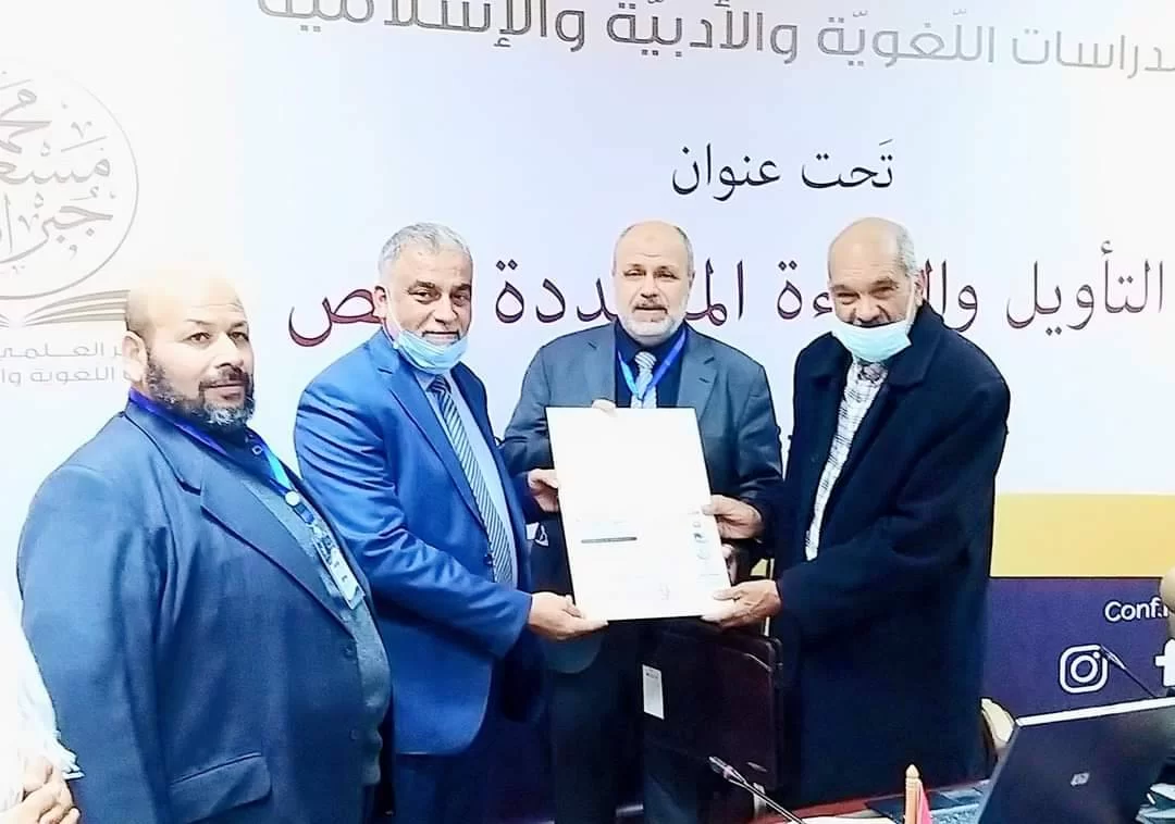 المحاضرة العلمية للأستاذ الدكتور( محمد خليفة الأسود )على هامش اختتام فعاليات المؤتمر العلمي الدولي للدراسات اللغوية والأدبية والإسلامية ( التأويل والقراءة المتجددة ) وقد اختير من قبل اللجنة المنظمة للمؤتمر كشخصية المؤتمر نظيرا لمكانته المرموقة