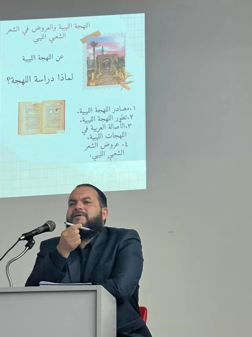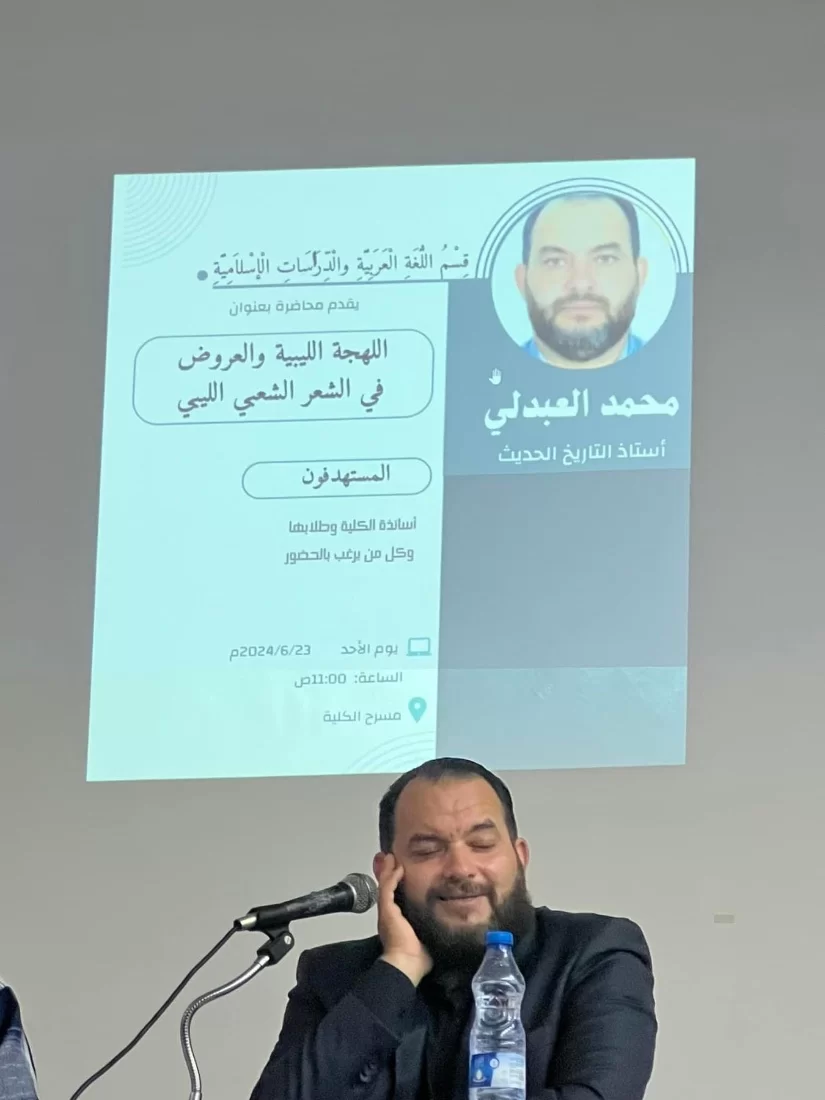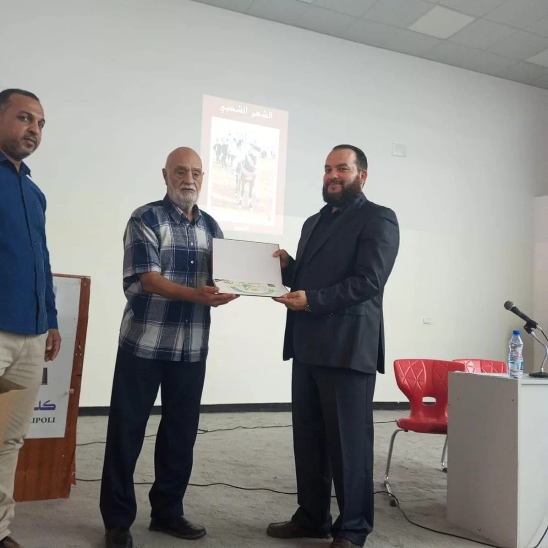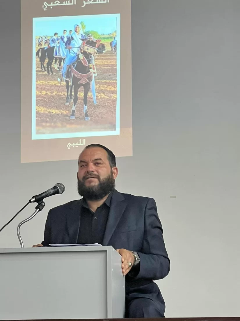 انتعشت أرواحنا و المحاضر يقول : لهجتنا هويتنا ، علينا أن نعتز بها .. هكذا كانت أجواء اليوم الأحد الموافق 23-6-2024م و نحن نستمع إلى محاضرة عن (اللهجة الليبية ) قدمها الدكتور (محمد العبدلي) الذي أمتعنا وهو يعرض أبحاثه القيّمة حول اللهجة الليبية ، و مصادرها وأصالتها ، و صلاتها باللغة العربية ، ثم عرج على الشعر الشعبي و عروضه ، ذاكرا صلته بالشعر العربي القديم من حيث المعنى و المبني و الصورة الشعرية ، زخم من المعلومات شد انتباهنا و لفتنا إلى جماليات شعرنا الشعبي أو المحكي باللهجة الدارجة نحيي الشاعر الدكتور ونشكره على ما أتحفنا به في هذا اليوم المميز ، بما أغنى الذائقة الشعرية الشعبية لدى الحضور من أساتذة وطلاب وضيوف ، كذلك نشكر الدكتور سالم المرادي على تقديمه للضيف المحاضر خير تقديم وليس بغريب عنه فهو واجهة المثقف البارع، والشكر موصول للدكتور علي البهلول مقترح هذه المحاضرة، والدكتور ناهد الباجقني منسق النشاط بالقسم .