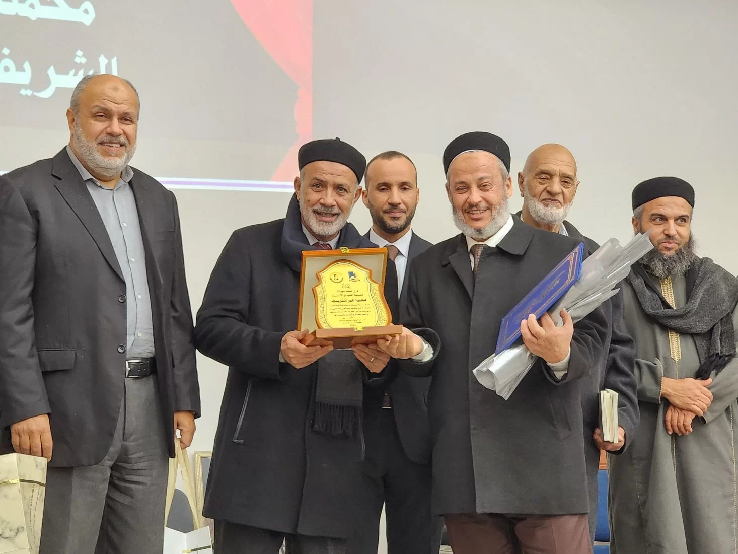 تلتها تكريم الشخصية المتميزة والمرموقة بالقسم الشيخ الأستاذ (محمد عمر الشريف) أستاذ الشريعة بالقسم ،على عطائه المستمر والدؤوب للقسم وطلابه .وإلقاء أبيات بحق الدكتورمحمد من كلمات الشاعر علي البهلول.