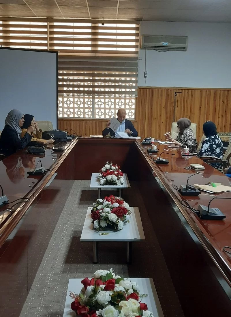 قد صباح يوم الأربعاء؛ الموافق: 16 أكتوبر 2024م. الاجتماع التاسع للعام الدراسي 2024 - 2025م. بحضور رئيس القسم وأعضاء هيئة التدريس بالقسم.افتتح الاجتماع بكلمة ترحيبية لرئيس القسم أ. الطاهر المصرى بأعضاء هيئة التدريس بالقسم، من خلال الاجتماع تم اعتماد محضر الاجتماع السابق كما تم مناقشة بند الدراسة والا