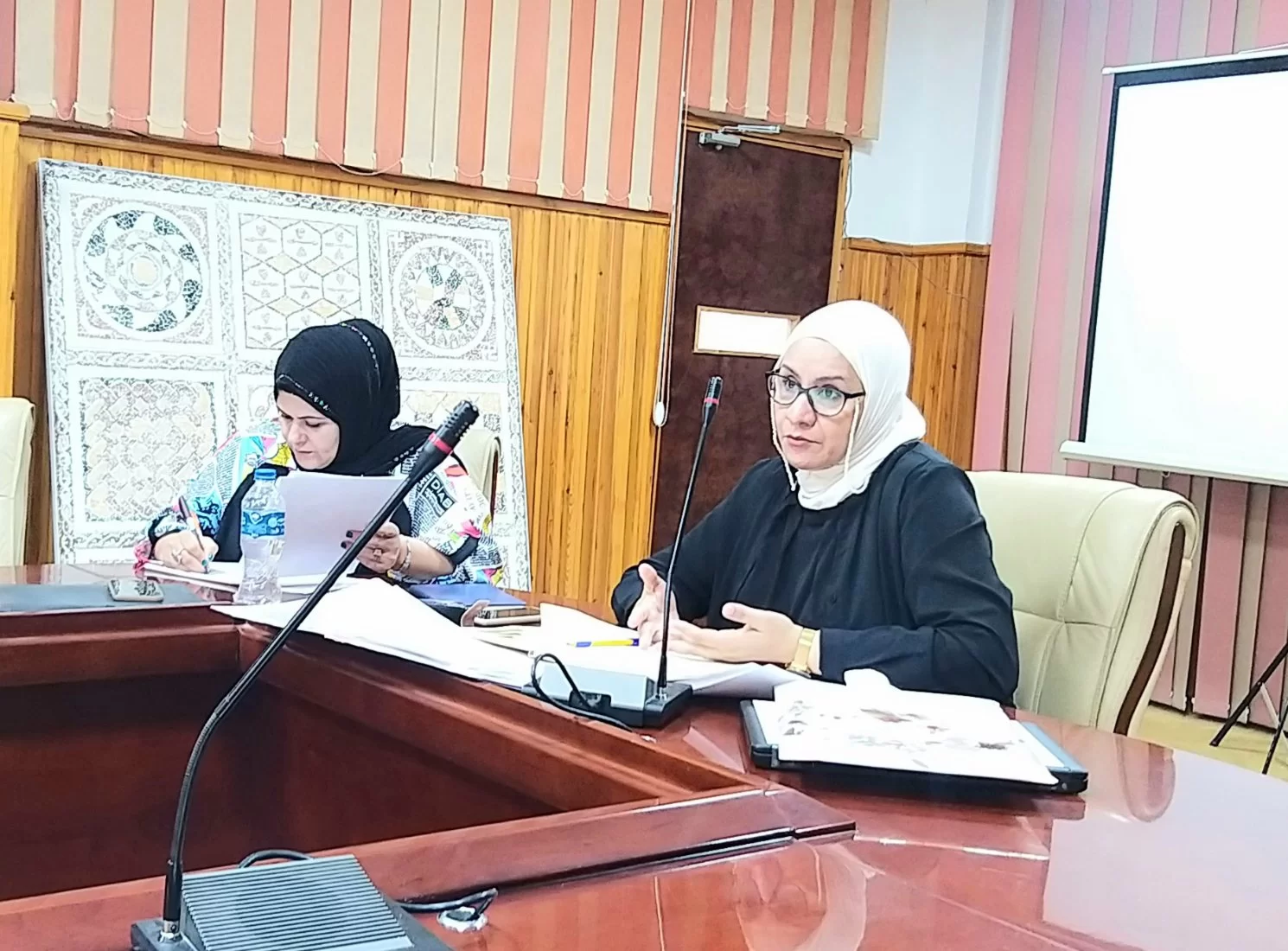 عُقد اليوم صباحًا الاجتماع الدوري لمجلس قسم الأحياء على تمام الساعة الحادية عشرة بقاعة الاجتماعات، حيث استهلّت أ. فدوى مهني رئيس قسم الأحياء الاجتماع بالترحيب بالكادر التدريسي للقسم، ثم طرحت أ. فدوى على أعضاء هيئة التدريس بنود الاجتماع وأبرزها: التجهيز والاستعداد للفصل القادم من حيث توزيع ا