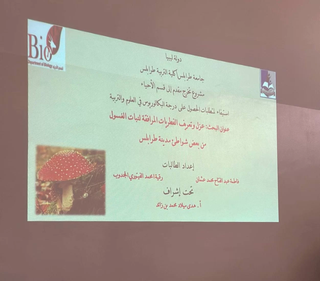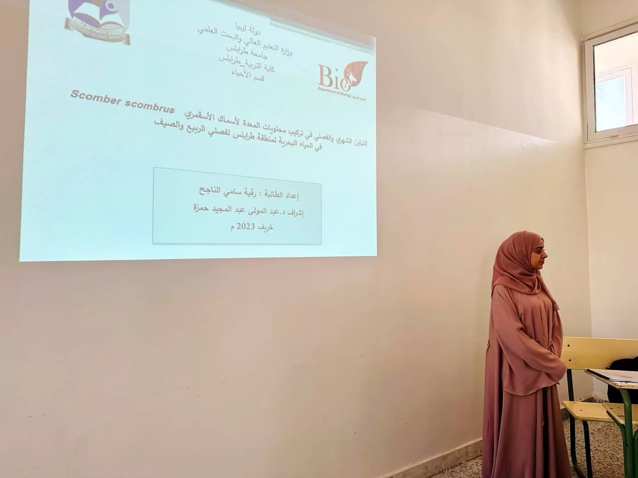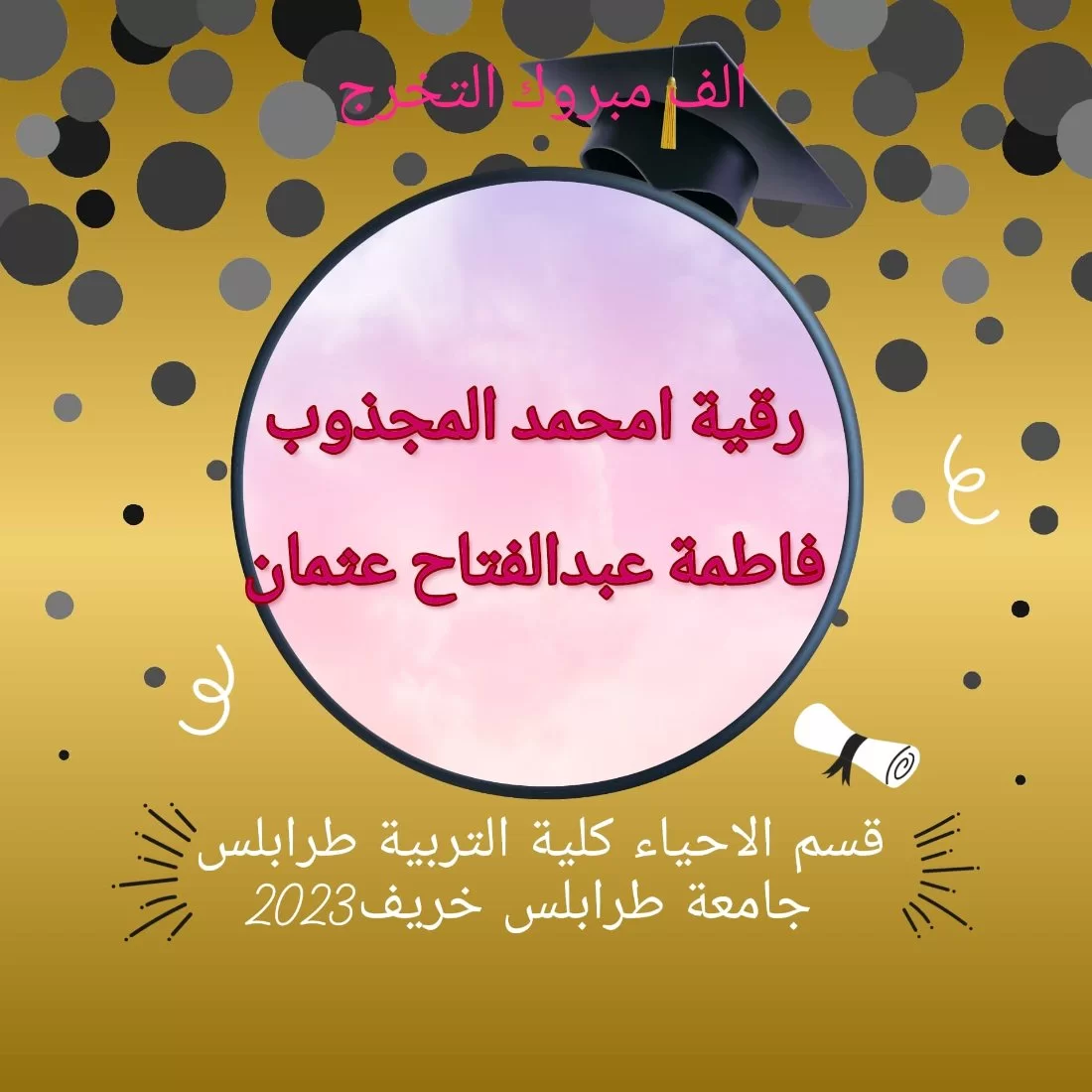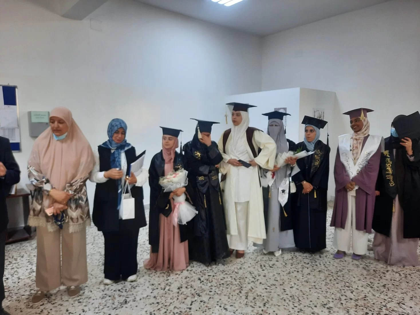 نجوما تلألأت في سماء كلية التربية طرابلس فعكست بريقها فأضاءت قلوباً واشرقت ثَّغْر امهات واباء ينتظرو لحظات سماع تفوق بناتهن ونجاحهن فى ختام مسيرتهن العلمية وبهذا نفاخر الدنيا بأكملها بترك بصماتنا الواضحة بتفوقهن وهذا دليل عظيم عطائنا... احتفل قسم الاحياء امس الخميس الموافق 18 / 4 / 2024 بمناقشة مشاريع تخرج نخبة من طالبات القسم اللاتى انهن بحث تخرجهن للفصل الدراسي خريف 2023 بأشراف الكادر التدريسي بالقسم وتمت المناقشة من قبل لجان ممتحنة باأشراف وتنسيق من قبل الاستاذة أمال أنبية وبمتابعة رئيس القسم الاستاذ الطاهر المصرى وبحضور اهالى الطالبات ومشاركة كل اعضاء هيئة التدريس بالقسم تم انجاز هذا الحدث بنجاح وبفرح وتعالى زغاريت الامهات وفرحة الاباء بنجاح بناتهن وبهذا نتقدم نحن اعضاء هيئةالتدريس بالقسم بالتهانى والتبريكات للطالبات الخريجات لنجاحهن وتفوقهن... هذه ليست النهاية وانما هى بداية سلم مسيرة الابداع و التطور لكن طالباتنا العزيزات... ومازال قسم الاحياء بإذن الله يبدع ويعطى دفعات متوالية مبدعة تنشر العطاء المستمد من نهر عطائنا...