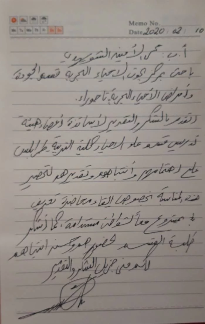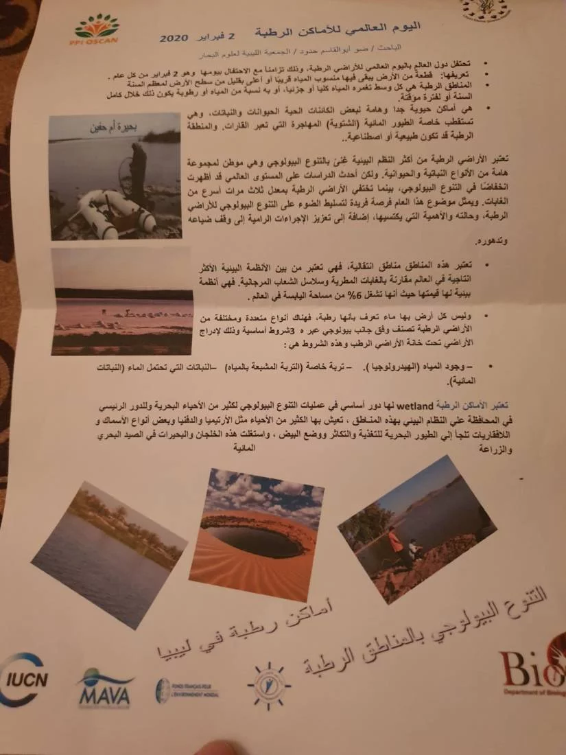 استضاف قسم الأحياء اليوم : الإثنين بتاريخ: 10/ 2/ 2020 م أعضاء من الجمعية الليبية لعلوم البحار:Libyan Marine Science Association وشرفنا بالزيارة كلآ من د . ضو أبو القاسم حدود / رئيس الجمعية الليبية والمغربية لعلوم البحار، وباحث بمركز البحوث للأحياء البحرية.أ. علي شفرن عضو/ بالجمعية الليبية والمغربية لعلوم البحار وباحث بمركز الأحياء البحرية / قسم الزراعة المائية.أ. ب. محمد الأمين الشويهدي/ عضو بالجمعية الليبية والمغربية لعلوم البحار، وباحث بمركز الأحياء البحرية / قسم الجودة وأمراض الأحياء البحرية.وكانت المحاضرة على تمام الساعة العاشرة صباحا" بمعمل قسم الاحياء بحضور أعضاء هيئة التدريس بالقسم ومدير مكتب المعلومات والتوثيق بالكلية أ. أسامة القديري،وحضر أيضآ عدد من طلبة القسم والخريجات اللاتي تقدمنّ بطلب تنزيل مشروع التخرج للفصل القادم.ولقد تناولت المحاضرة عدة جوانب هامة لا يسعنا هنا الحديث عنها بالكامل لأهمية كل ما ورد فيها من معلوماتٍ قيمة، فلقد ألقى رئيس الجمعية: د. ضو حدود الجزء الأول من المحاضرة والتي هدفت للتعريف بماهية المناطق الرطبة وتعرضها للتأثيرات البيئية والنشاط البشري الغير ممنهج كاستعمال الموارد البشرية بشكل مفرط، كما قام بالتعريف بالعديد من البيئات الرطبة كالبحيرات والوديان والسبخات في الجنوب الليبي والساحل الغربي والشرقي ووسط ليبيا وأهميتها الاقتصادية والبيئية، كما أشار إلى مفهوم السياحة الإيكولوجية للمحميات الليبية وإلى أهمية استثمارها والمحافظة عليها وأهم مناطق الجذب السياحي بليبيا.كما ألقى أ. علي شفرن الجزء الثاني من المحاضرة حيث قام بالتعريف بالجمعية الليبية لعلوم البحار بشكل وافي وعرض مهام وأهداف الجمعية، كذلك عرّف بمشروع *معا" لشواطئ مستدامة* Togather for Sustainable Shores الذي يهدف إلى الاهتمام بالتنوع الحيوي في مختلف البيئات الرطبة بليبيا.كما قدم أ. محمد الشويهدي نبذة تعريفية بمشاريع زراعة الأسماك ومدى أهميتها الاقتصادية والبيئية في مقاومة الاستنزاف المُفرط للثروة السمكية. وفي نهاية المحاضرة تفضّل أعضاء الجمعية بتقديم مقترحات لمساعدة طلبة المشاريع والمشاركة مع إدارة القسم بالاستشارات العلمية والبحثية والمعملية وكذلك مساعدة البحاث الراغبين في الانضمام للجمعية أو الاستفادة من الهيئة العلمية للبحث والتكنولوجيا والابتكار ( الهيئة الوطنية للبحث العلمي سابقا") في تقديم أوراقهم البحثية.....وفي الختام نشكر ضيوفنا الكرام الذين شرفونا اليوم من أعضاء الجمعية الليبية لعلوم البحار الذين أفادو الحضور الكريم بالكم الهائل من المعلومات القيّمة والهامة عن الجمعية وأهدافها ونشاطاتها المتنوعة، بارك الله لهم مجهوداتهم ووفقهم في عملهم وزادهم علمآ ونفع بهم.والشكر الجزيل لرئيس قسم الأحياء أ. سارة بن زقلام لاستضافتها هذه النخبة المميزة وتدبيرها الجيد لكل مايفيد طالباتها وحسن إدارتها لنشاطات القسم والعمل الدائم لتطوير أدائه كل عام، جزاها الله عنه خيرآ وبارك لها علمها وعملها.وشكر خاص لمدير مكتب المعلومات والتوثيق أ. أسامة القديري على حضوره الراقي ومشاركته الفعّالة في هذا اليوم، ومواكبته الدائمة لكل نشاطات القسم بارك الله له مجهوداته وأمدّه بالصحة والعافية ونفع به.والشكر لكل الزملاء والزميلات من أساتذة القسم وفنيات المعمل على إعدادهم الجيد وتحضيرهم الأنيق لهذا اليوم، ولايفوتنا أن نشكر طالباتنا العزيزات على المساهمة في تنظيم وتجهيز المعمل والإشراف على تنظيم البوفيه المتواضع الذي ساهم في إعداده كل أساتذة القسم لضيوفنا الكرام بما يليق بواجب الضيافة والكرم. والله يوفقنا دائماً لما فيه الخير لصالح الطلبة والمسيرة التعليمية...