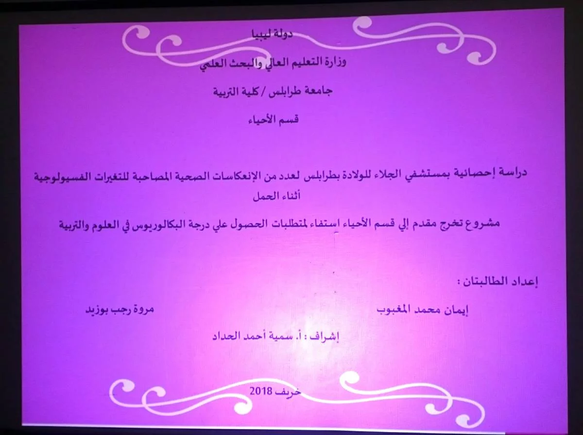 * دراسة إحصائية بمستشفى الجلاء للولادة بطرابلس لعدد من الانعكاسات الصحية المصاحبة للتغيرات الفسيولوجية أثناء الحمل