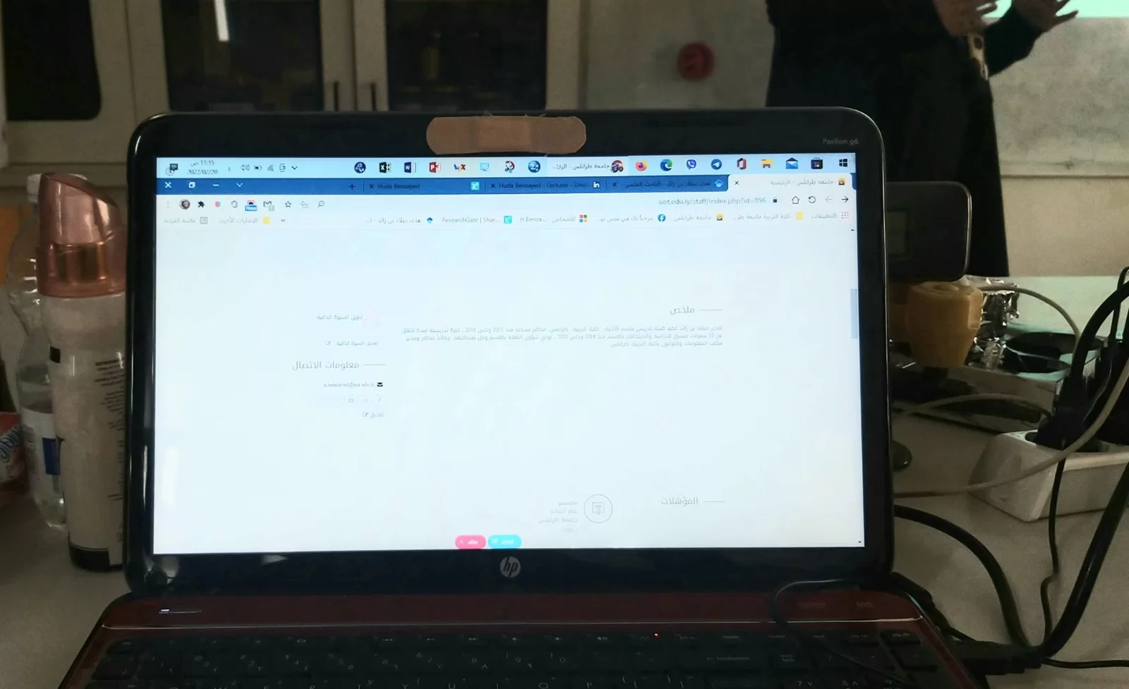 ( google scholar) وكيفية استخدامه، كما ساعدت بعض خريجات القسم على توثيق مشاريعهنّ على موقع الجامعة. حضر الورشة رئيس قسم الأحياء: أ. فدوى مهني، وبعض أعضاء هيئة التدريس بالقسم:أ. سارة بن زقلام وكيل الكلية المكلف. أ. هدى بن زائد مدير مكتب المعلومات والتوثيق بالكلية. أ. سمية الحداد منسق المعلومات والتوثيق بالقسم. أ. مغفرة والي معيدة بالقسم. . بعض خريجات القسم. واستضاف القسم د. محمد الشويهدي رئيس قسم الجودة وتقييم الأداء بكلية الطب البيطري / جامعة طرابلس.