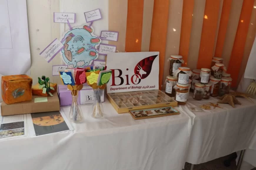 بإشراف منسق النشاط بقسم الأحياء الأستاذة فدوى مهنى. ومجهود مبذول من طالبات القسم . شارك قسم الأحياء في المعرض المقام على هامش احتفالية يوم الوفاء للأوفياء التي أقيمت في كلية التربية / طرابلس. كانت المشاركة مميزة بتميز الطالبات المشاركات ، وقد اشاد الحضور وعلى رآسهم، أ.د. خالد عون رئيس الجامعة بالمجهودات المبذولة في سبيل إظهار جناح القسم بهذا التميز