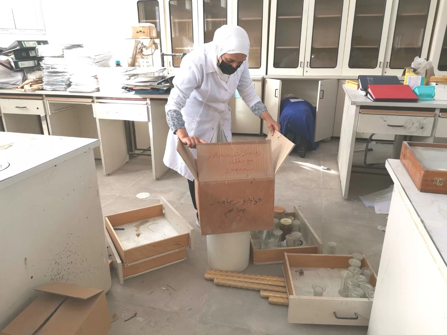 بعد انجاز واكتمال الصيانة وتجهيزا لافتتاحية المعمل. تم البدء في تنظيف وتنظيم محتويات المعمل . وكان هذا بمشاركة ومد يد العون كلا من :