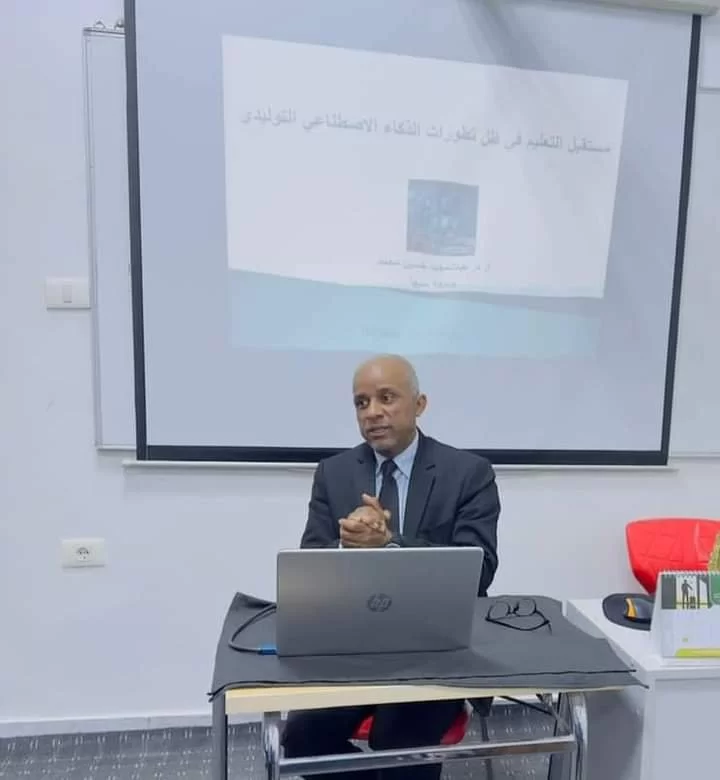 استضاف القسم السيد / أ. د. عبدالمجيد حسين محمد، عضو هيئة التدريس بكلية العلوم جامعةسبها، لتقديم هذه الورشة والتي هدفت إلى التعريف بالذكاء الاصطناعي التوليدي و التسهيلات التي يقدمها للعملية التعليمية.
