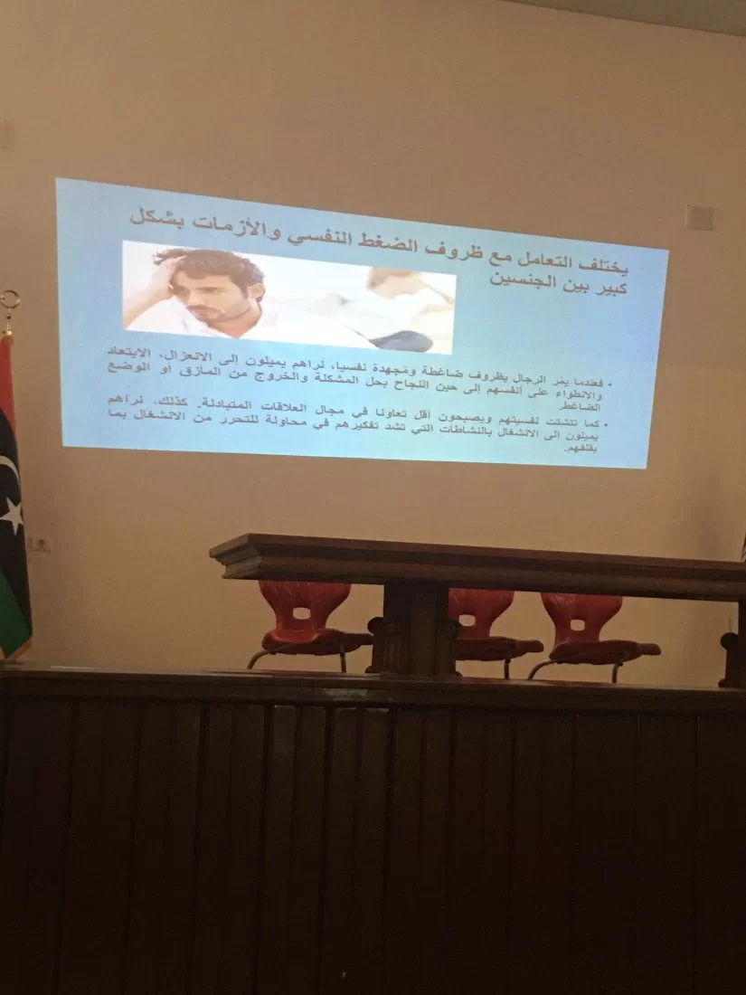 بناء على مذكرة التفاهم المبرمة بين كلية التربية جامعة طرابلس و بلدية سوق الجمعة استضافت كلية التربية يوم الخميس الموافق 25/5/2023م الدكتورة الفاضلة نجاة شقوارة و التي القت محاضرة توعوية تحت عنوان ضغوطات الحياة على الزوج والزوجة واثرها النفسي والصحي وذلك بالتنسيق مع عضو المجلس البلدي سوق الجمعة السيدة / مفيدة صولة.. ورعاية وتنظيم المجلس البلدي سوق الجمعة ، كما قام قسم التربية و علم النفس بالمساهمة في هذه البادرة بتوزيع مطويات و منشورات تدعم الصحة النفسية