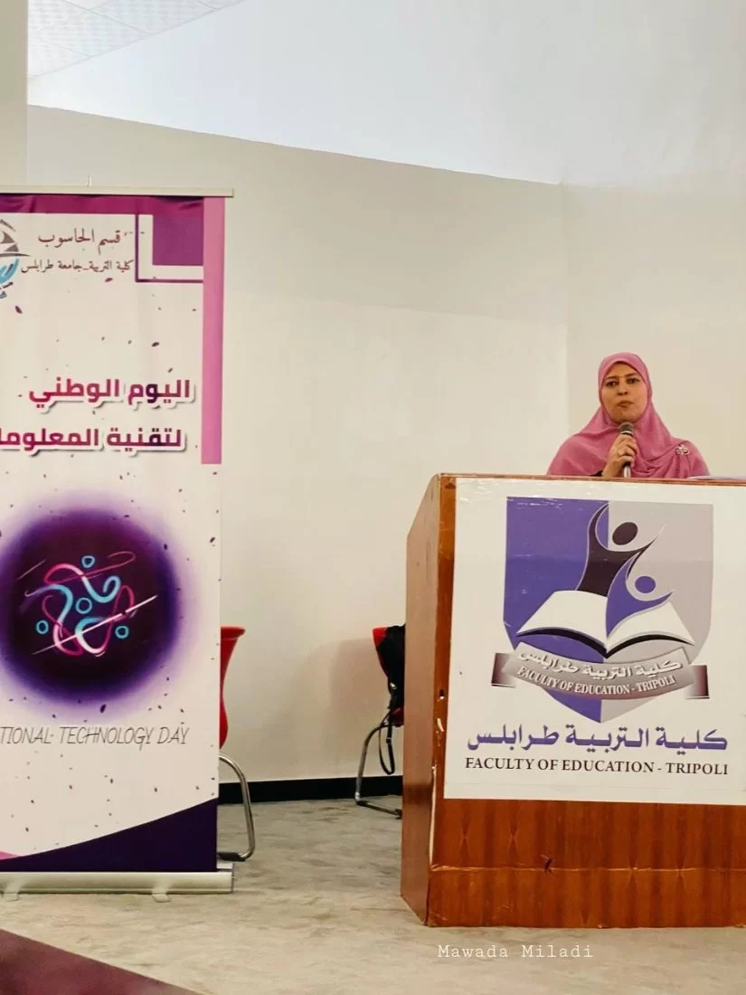 بالإضافة إلى مشاركة من السيدة ايمان النكيب استاذة بجامعة طرابلس كلية الاقتصاد فرع قصر بن غشير و مستشارة قانونية بمحاضرة حول قانون الأمن السيبراني.