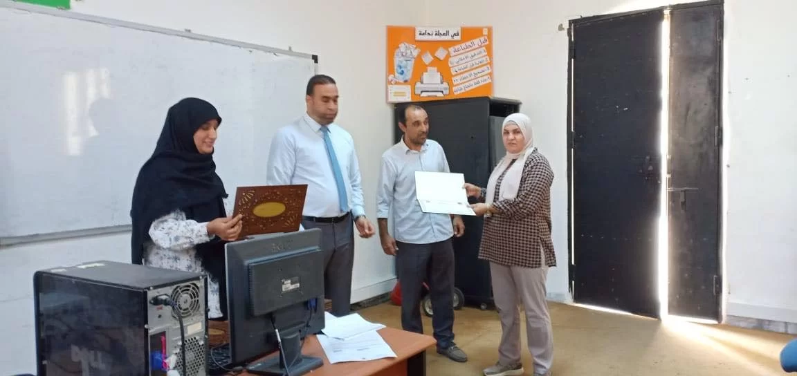 في صورة تعكس روح العمل الجماعي و التطوير الذاتي تم يوم الخميس الموافق 01/09/2022.م اختتام الدورة التدريبية للموظفين بكلية التربية و التي تمثلت في برنامج محرر النصوص (Microsoft Word) و التي ألقتها الاستاذة خلود القنوني باشراف الدكتورة مروة سويدان رئيسة قسم الحاسوب بالتعاون مع مكتب خدمة المجتمع و تنمية البيئة و في ختام الدورة التدريبية حضر السيد/ د. سامي حمدي عميد الكلية فعاليات الاختتام ، والسيد/ عبد الفتاح ديهوم مدير مكتب الشؤون الإدارية والمالية ونخبة من مدراء المكاتب و روؤساء الاقسام ، حيث قدمت شهائد تقدير و تكريم للمتدربين وما حضورهم و إقبالهم الا انعكاساً لرغبتهم في العلم والتعلم سائلين المولى عز وجل أن يوفقهم في حياتهم العملية والعمليةنتقدم بالشكر و عرفان لكل المشرفين على انجاح هذه الدورة التدريبية لمجهوداتهم و ثناء على عطائهم .