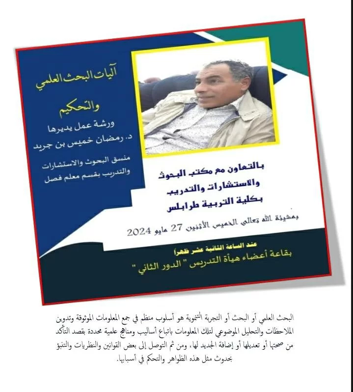 وقام بتنفيذ الورشة لطالبات مشاريع التخرج وحلقة نقاش منسق البحوث