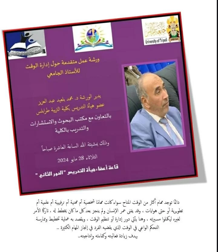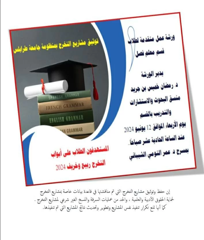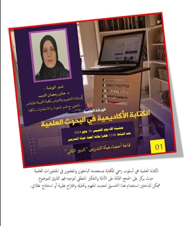 ضمن الخطة التدريبية المعتمدة للفصل الدراسي ربيع 2024 والتي يشرف عليها منسق البحوث والاستشارات والتدريب بالقسم نعلن للزملاء الكرام حزمة من البرامج على النحو التالي :